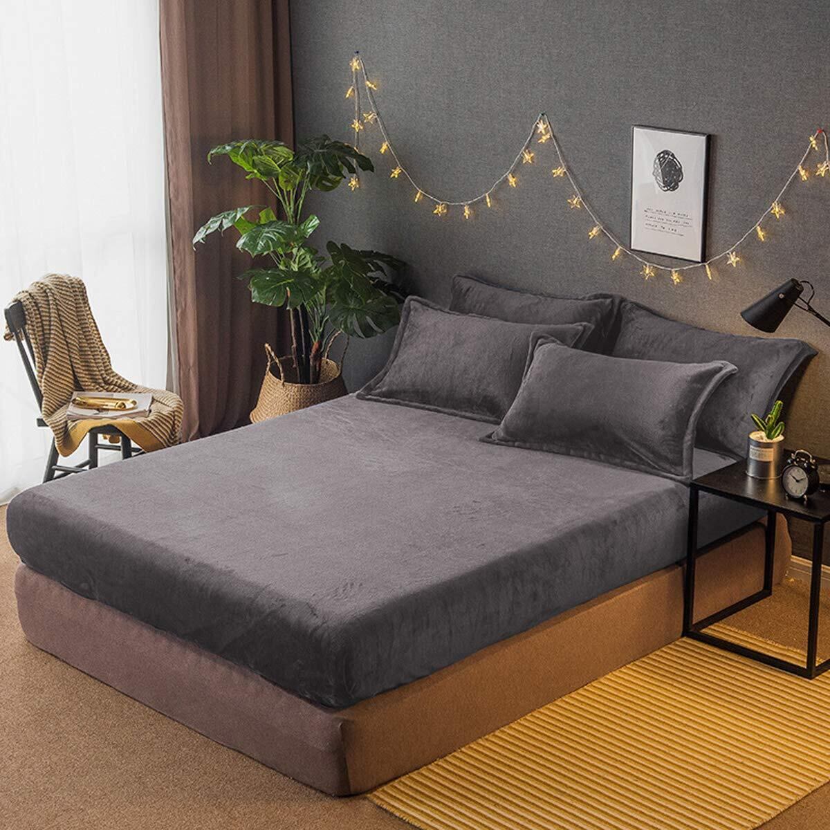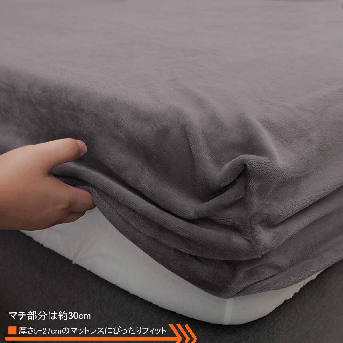 ボックスシーツ 秋冬用 ダブル パイル地 シーツ ベッドシーツ マイクロファイバー フランネル あったか 暖かい 柔らかい 抗菌防臭 マットレスカバー ベッドカバー (グレー, ダブル・140×200×30cm)
