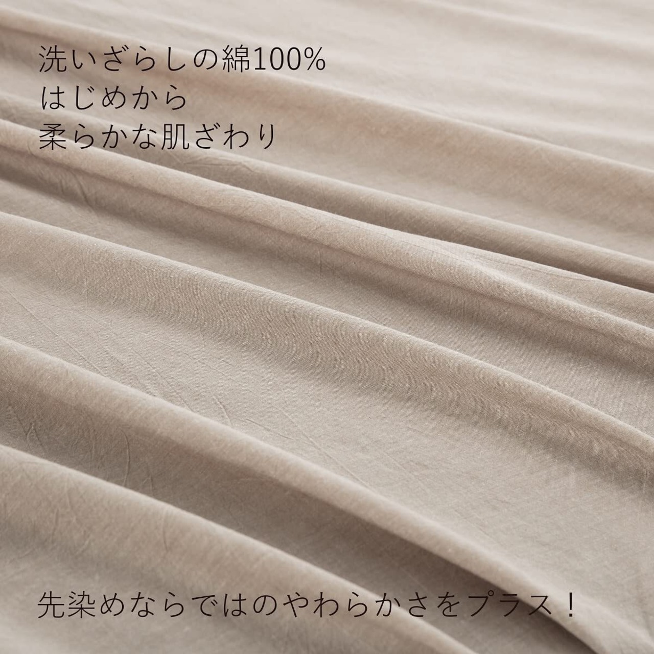 【オーガニックコットン洗いざらしの綿100%】洗いざらし仕上げにより最初から肌になじむように仕上げました。洗濯後のシワも味わいになる洗いざらしの綿です。洗いざらし綿はまるでお洋服のようで、使い込んだ綿だけが持つ風合いに、肌に優しくなじむ柔らかな肌ざわりです。