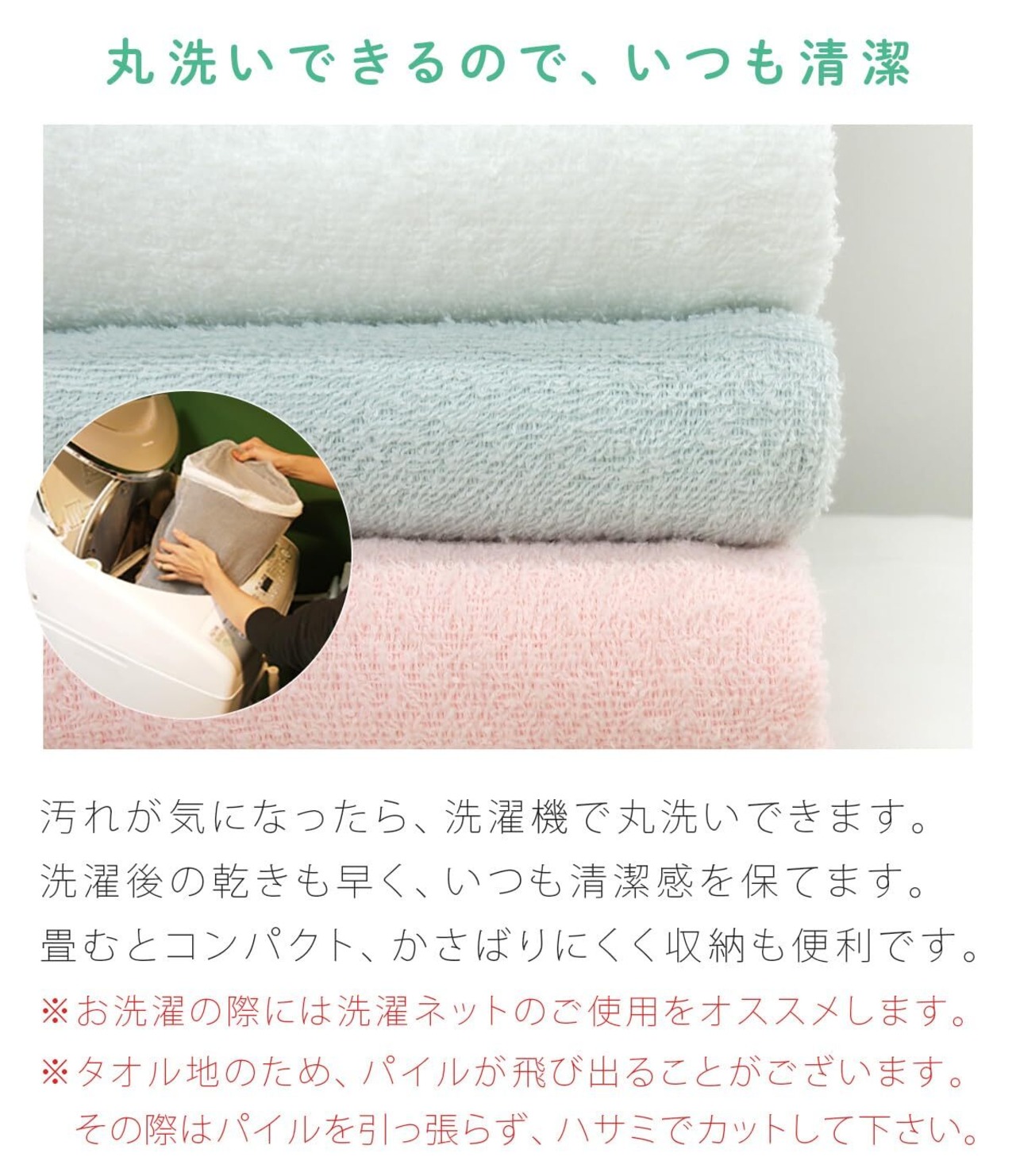 1枚のシーツを敷き布団・マットレスにそのまま包み込むように使います。寒い冬も暑い夏もオールシーズン快適。ポリエステルの敷きパッドやシーツだと吸水性が低く、汗を吸収し発散ができないため、寒い地域にお住まいの方ですと汗や息で凍ってしまうので、タオルシーツは重宝されています。