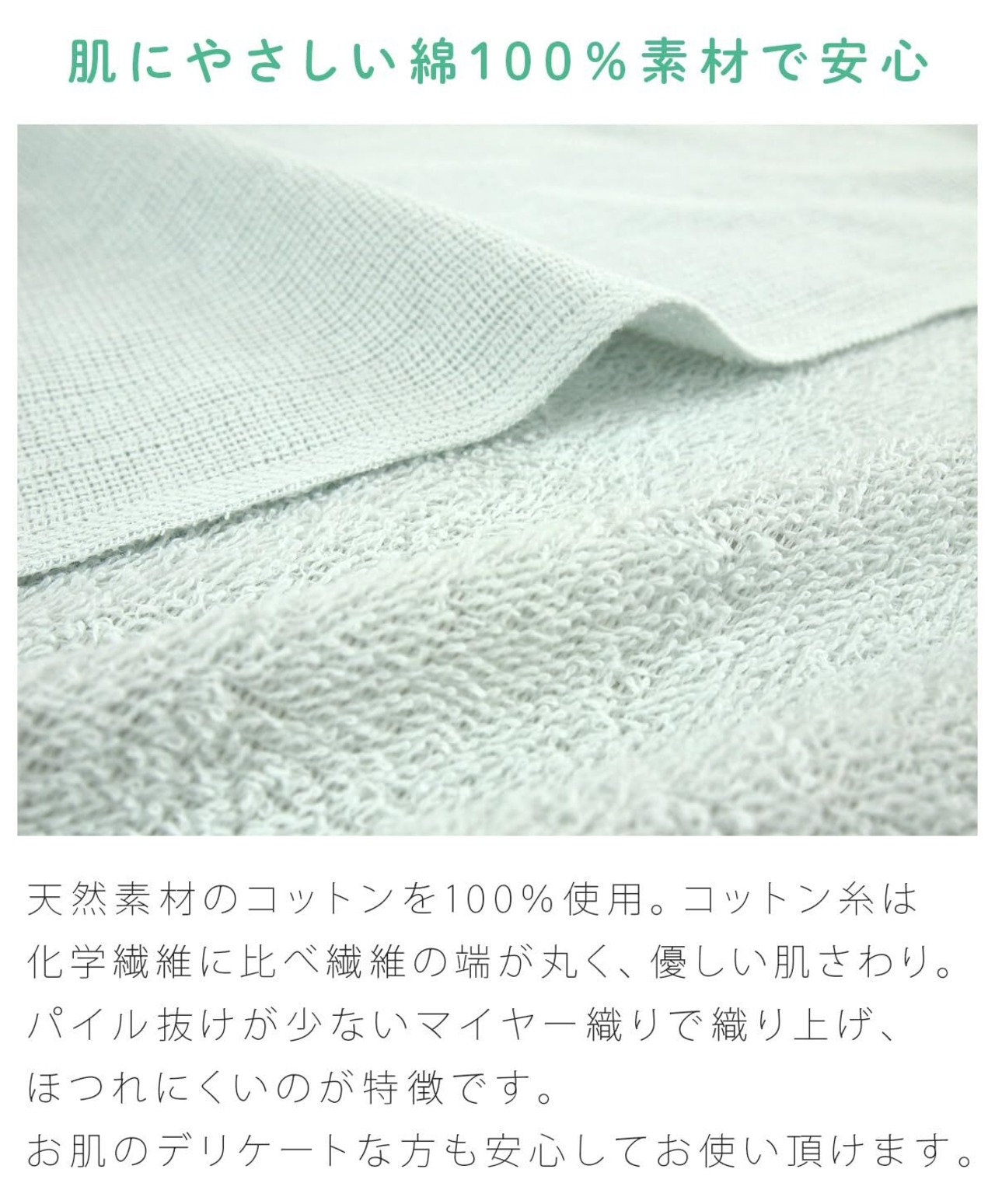 肌に優しい綿100%素材のタオル地、吸水発散性に優れているので、汗を素早く吸収し、サラッと心地よいシーツです。マイヤー編みで織り上げ、パイル抜けが少なく、ほつれにくい特長があります。