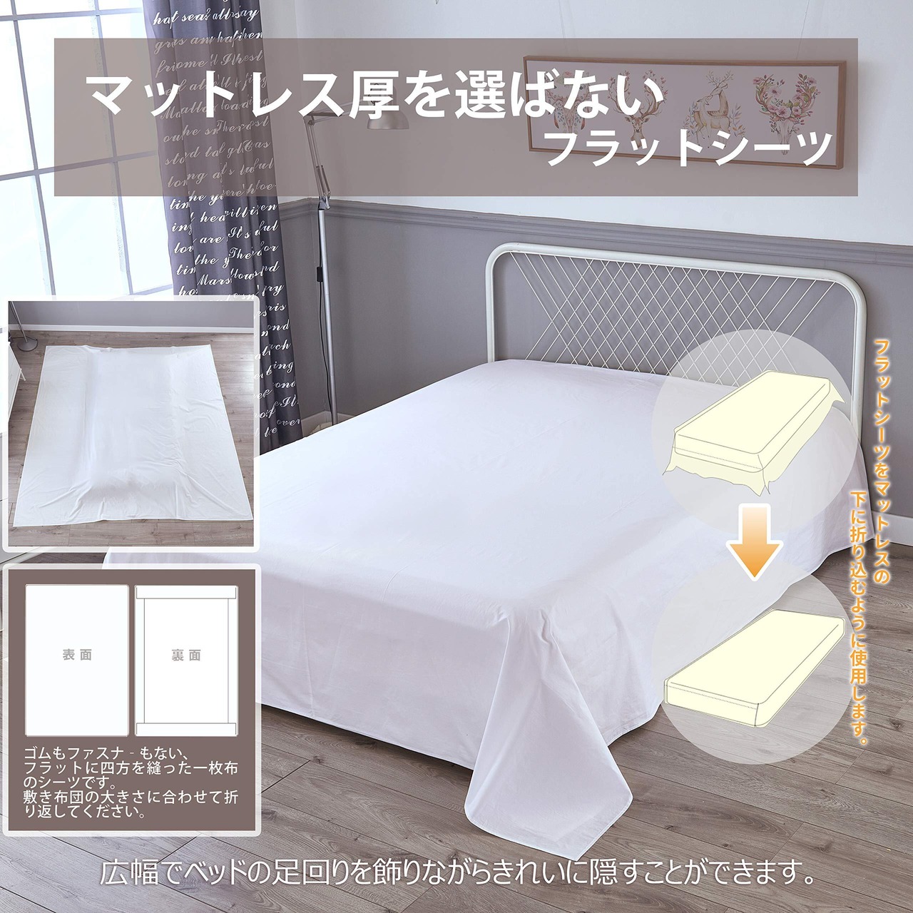 フラットシーツ キング250x290cm 綿100% 敷きシーツ ベッドシーツ 200本ブロード マットレスカバー アッパーシーツ 防ダニ 抗菌 無地 ホワイト