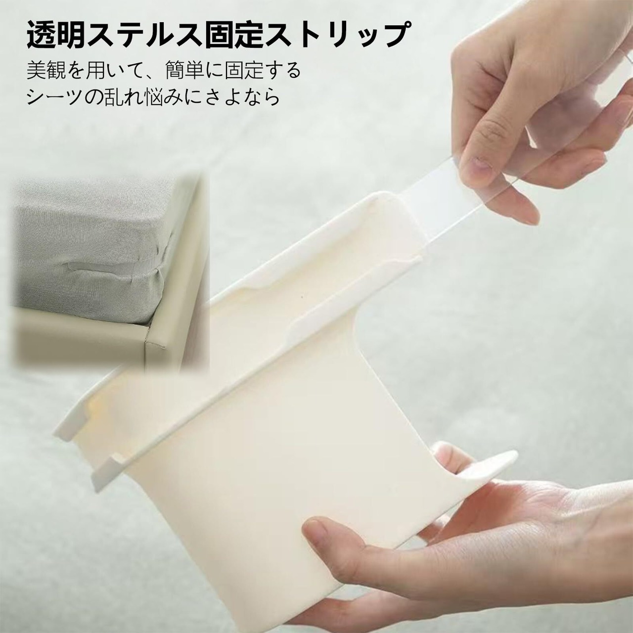 どんなシーツにも、いつでもフィット:ボックスシーツのコーナー固定具からフラットシーツのコーナー固定具まで、シーツクリップはあらゆるタイプとサイズのシーツ、さらには二段ベッドにも使えます。完璧に揃ったシーツをお楽しみください。