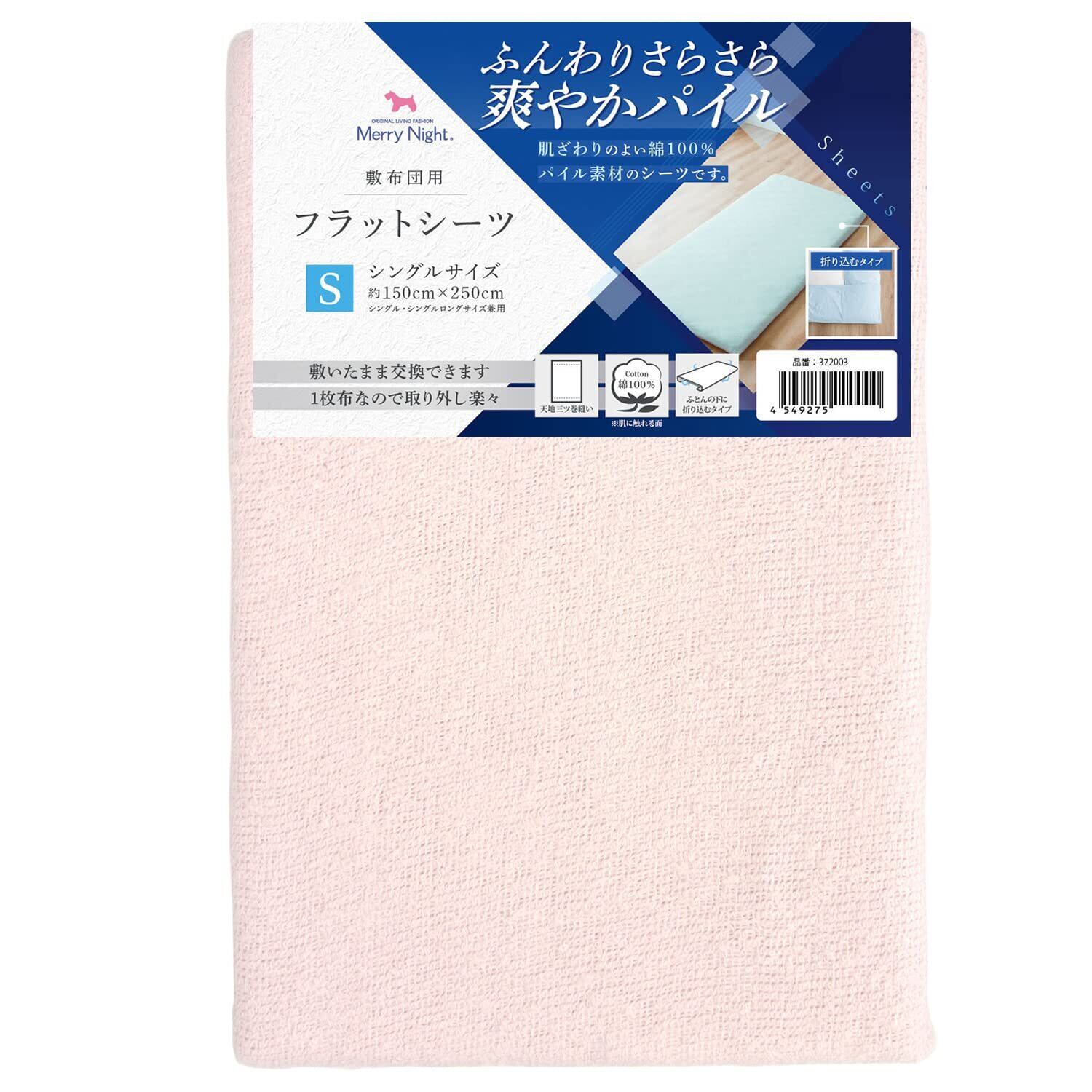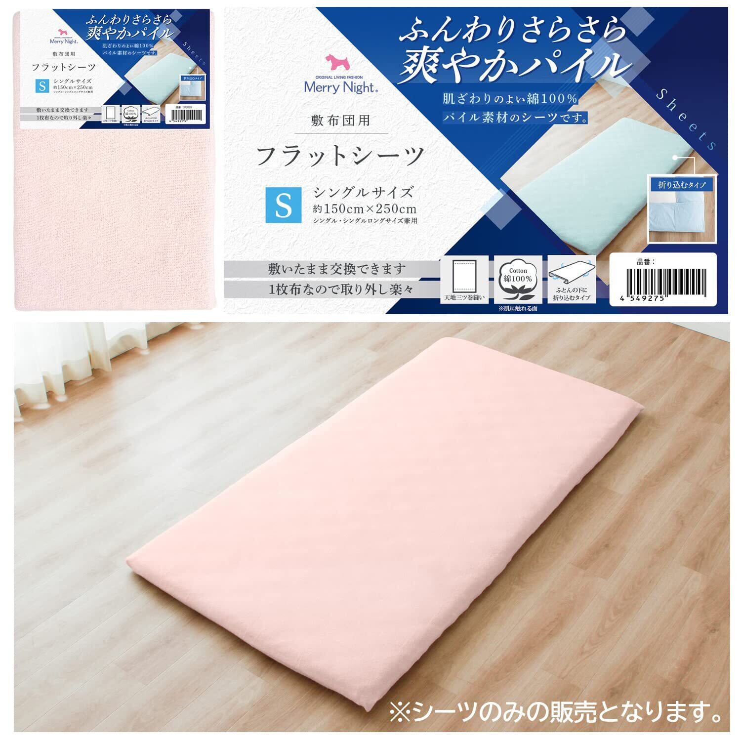 【数量限定】メリーナイト シーツ フラットシーツ パイル生地 ピンク 敷布団用 シングル 約150×250cm 綿100% ふんわりさらさら肌ざわり 洗える オールシーズン 372004-16