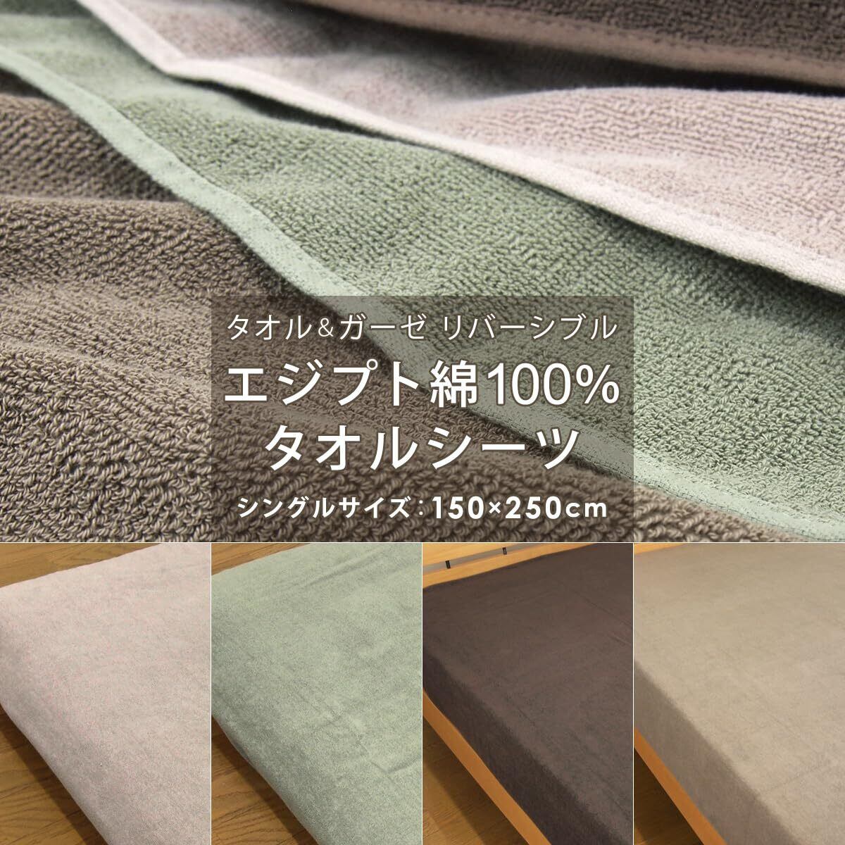 【2025最新】リヴェール タオルシーツ シングル エジプト綿100% シーツ フラットシーツ 150×250cm (セージグリーン)