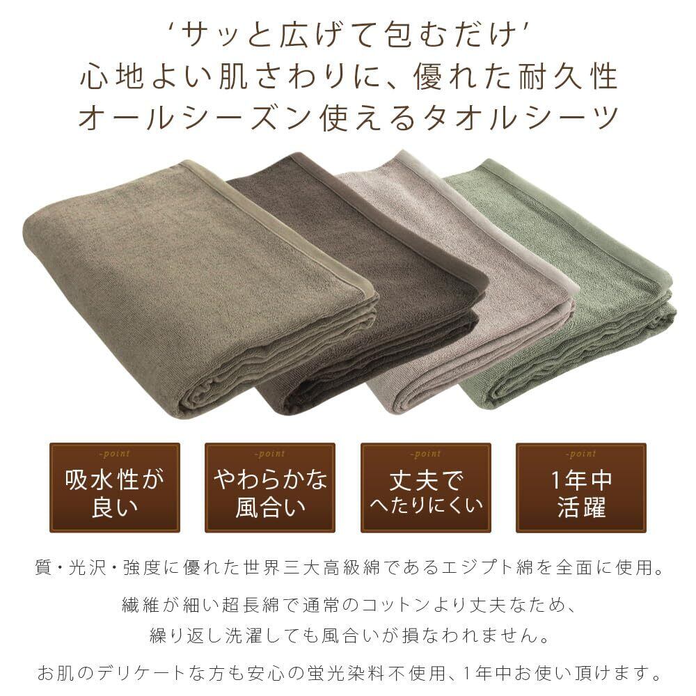 リヴェール タオルシーツ シングル エジプト綿100% シーツ フラットシーツ 150×250cm (セージグリーン)