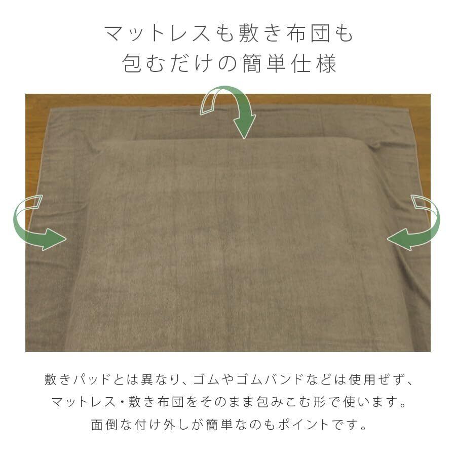 1枚のシーツを敷き布団・マットレスにそのまま包み込むように使います。裏のガーゼ地も使えるリバーシブル仕様。エジプト綿を高密度に編み立て、ショートパイルにて仕上げることで、毛羽落ちを防いでくれる丈夫さも兼ね揃いました。