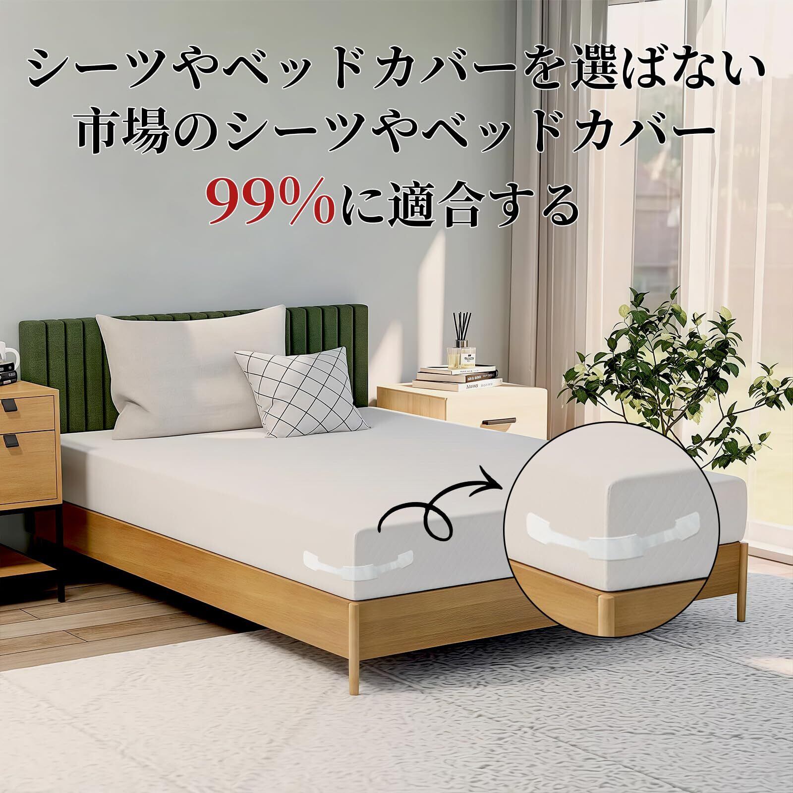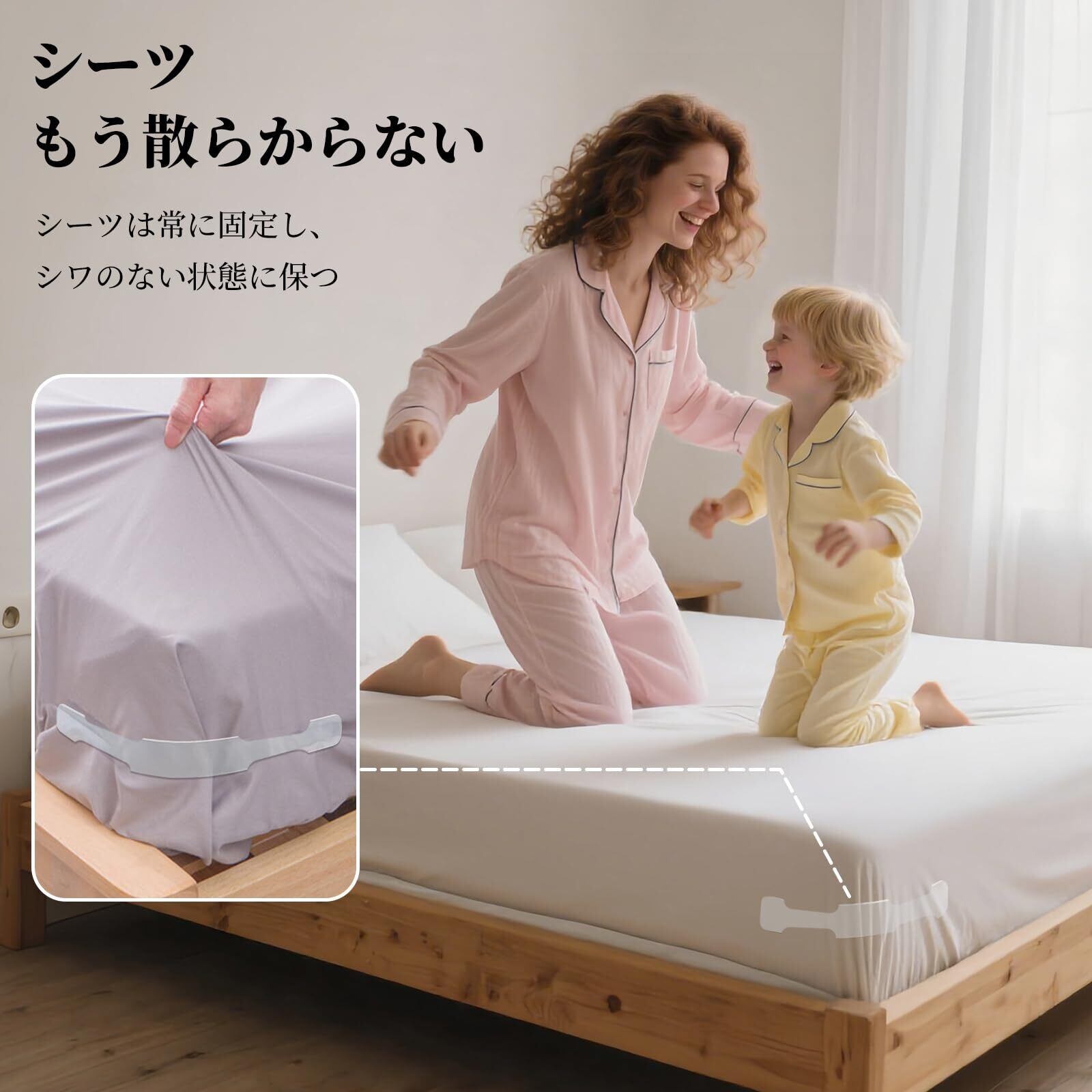 【ベッドシーツのズレ防止】シーツのズレやシワを防ぐ専用のシーツクリップです。使いやすくシンプルなデザインで、市販されているマットレスの99%にフィットします。設置後はシーツのズレを気にすることなく、快適な睡眠を楽しむことができます。