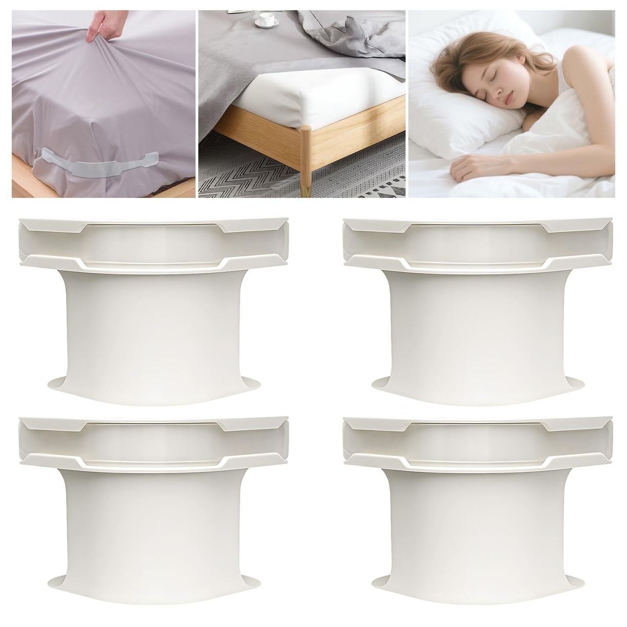【製品の仕様】カラー:ホワイト;サイズ;長さ20.5cm*幅11.6cm*高さ12.9cm;素材:プラスチック製;入数; 4個セット。高品質のプラスチック製で、耐久性に優れています。滑らかな表面はベッドシーツを傷つけず、ベッドシーツに自然になじみます。連結部分は特殊な形状とデザインで、ベッドシーツを傷つけることなくしっかりと固定できます。