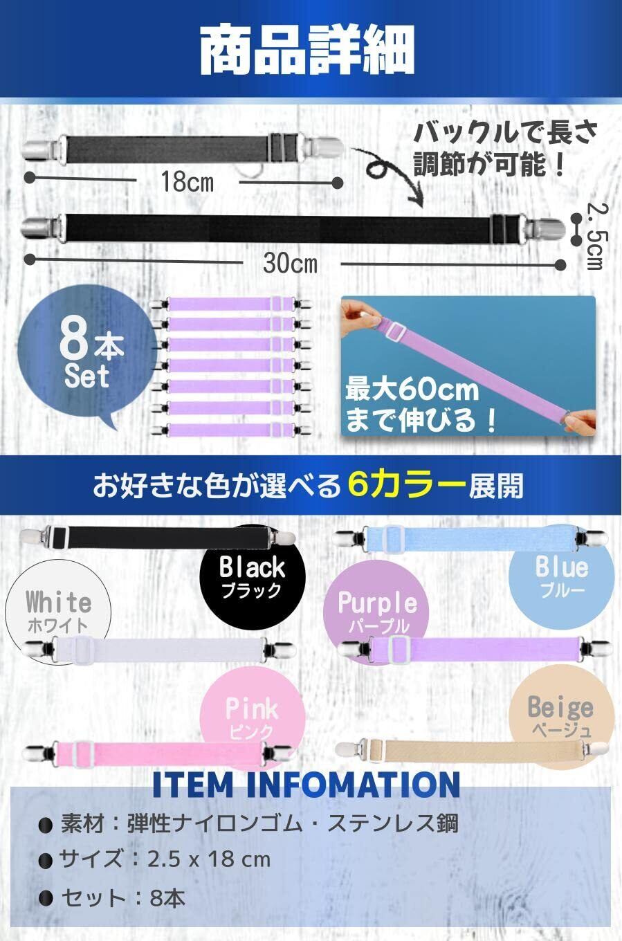 fogman 布団 シーツ ズレ防止 固定 クリップ ゴム バンド 留め具 コーナー 8本セット (ブラック)