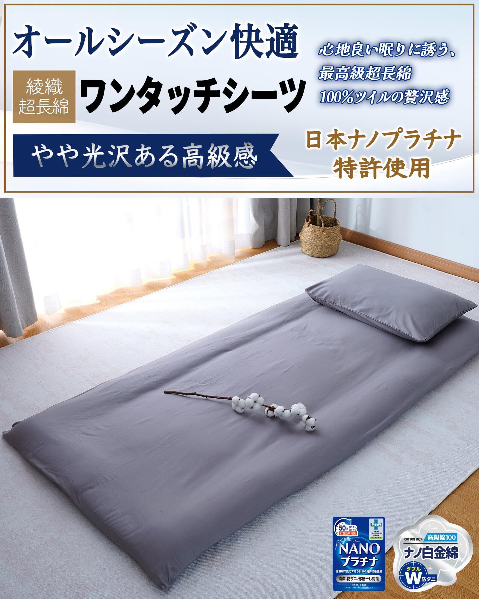 Maru Living【日本ナノ白金×高級綿100%】敷き布団カバー シングル 綿100 ワンタッチシーツ 綿 【高密度ツイル織り W抗菌防臭防ダニ】敷布団カバー しき布団カバー ホテル仕様 毛玉防止 光沢感 フィットシーツ めん100 オールシーズン 洗える 通気性 強化ゴム付き (シングル・グレー)