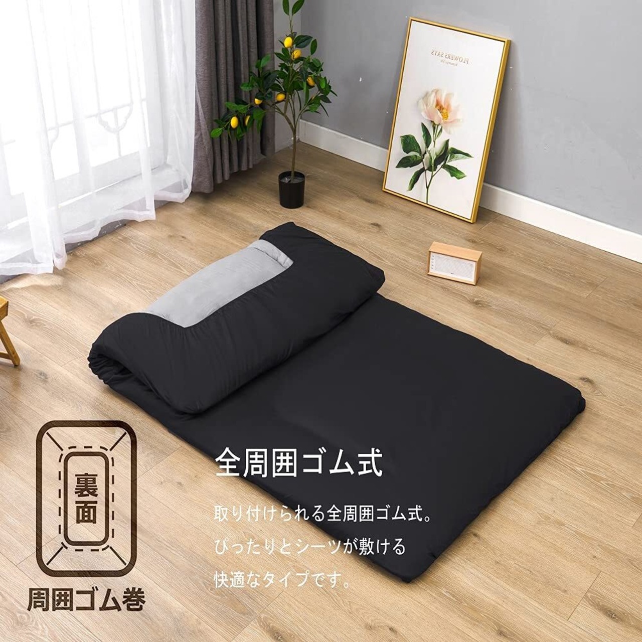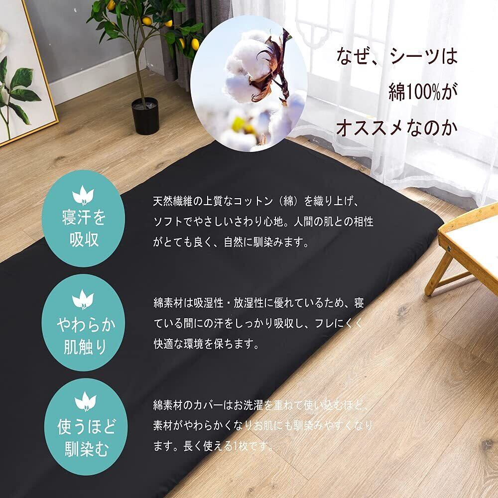 【新着商品】敷布団カバー シングル 綿100 ブラック ワンタッチシーツ 無地 敷きシーツ 防ダニ 通気吸湿 フィットシーツ 平織り