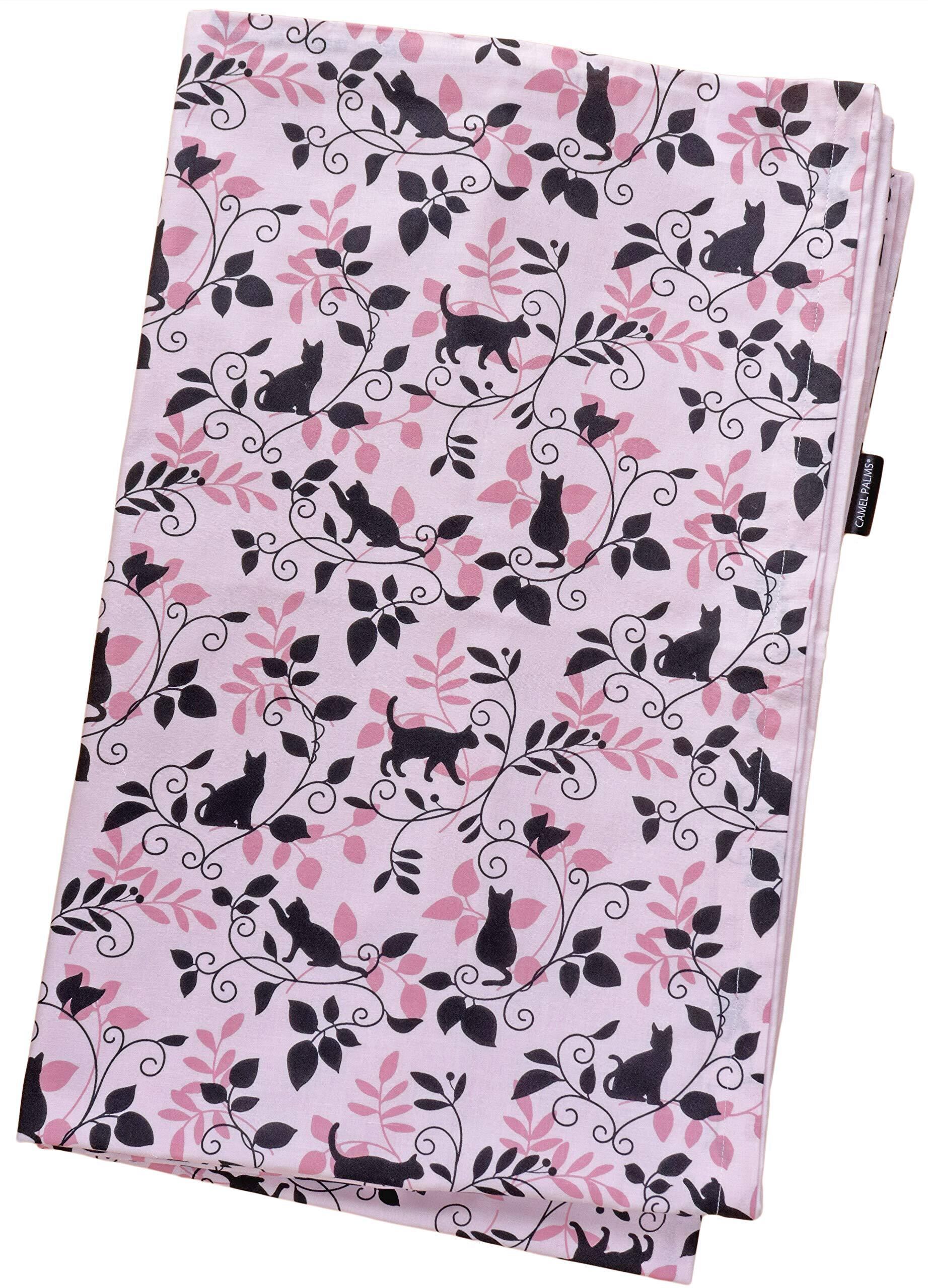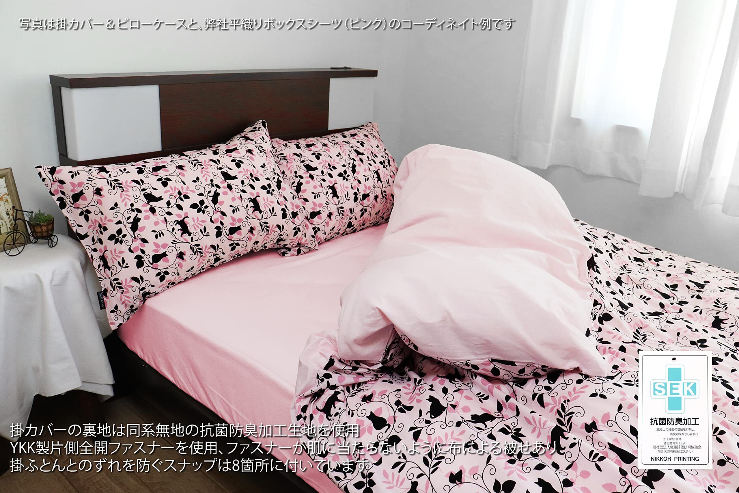 CAMEL PALMS 日本製 綿100% 掛布団カバー シングル 150×210cm 着脱簡単テープ付スナップ 片面抗菌防臭加工 黒猫柄 ピンク