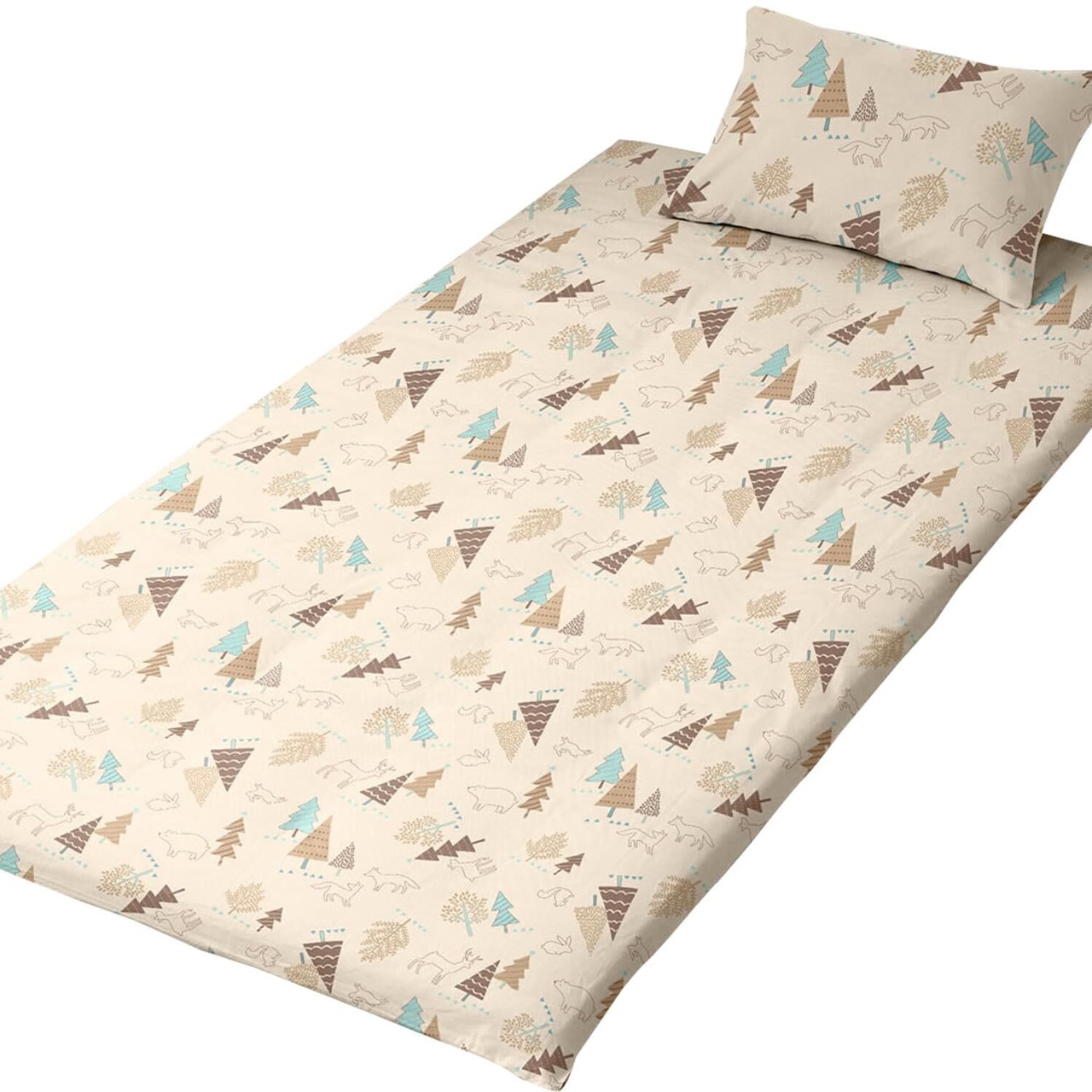 メリーナイト 大きく開いて ふとんが入れやすい 敷布団カバー 「北欧ツリー/ギンガムチェック」 ブラウン シングルロング 約105×215cm リバーシブル仕様 両面使える 着脱簡単 L字ファスナー 綿混素材 速乾 シワになりにくい 洗える 衛生 清潔 オールシーズン MN13152-93
