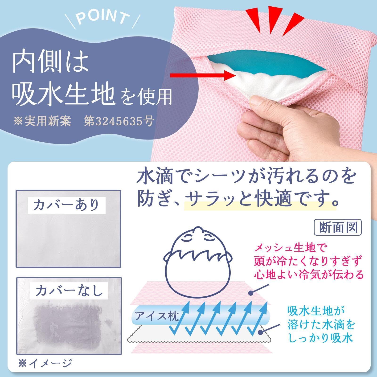【2025最新】コモライフ 水滴吸水のアイス枕カバー 2色組 アイス枕 カバー 枕カバー ピローケース ひんやり 通気性 夏 寝具