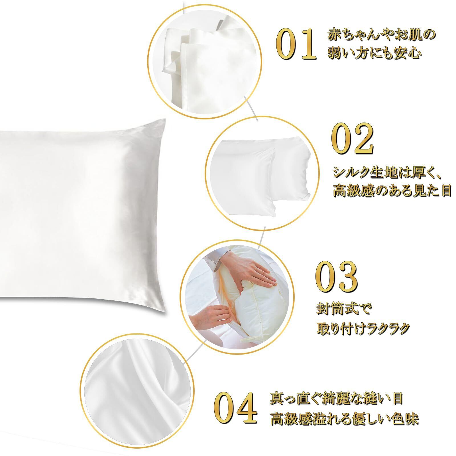 Utukky シルク枕カバー【TVで紹介】接触冷感 まくらカバー シルク 43 63 洗える 封筒式枕カバー 両面シルクピローケース すべすべ 寝癖軽減 美肌 抗菌防臭 敏感肌に優しい ギフト 四季適応 1枚セット アイボリー