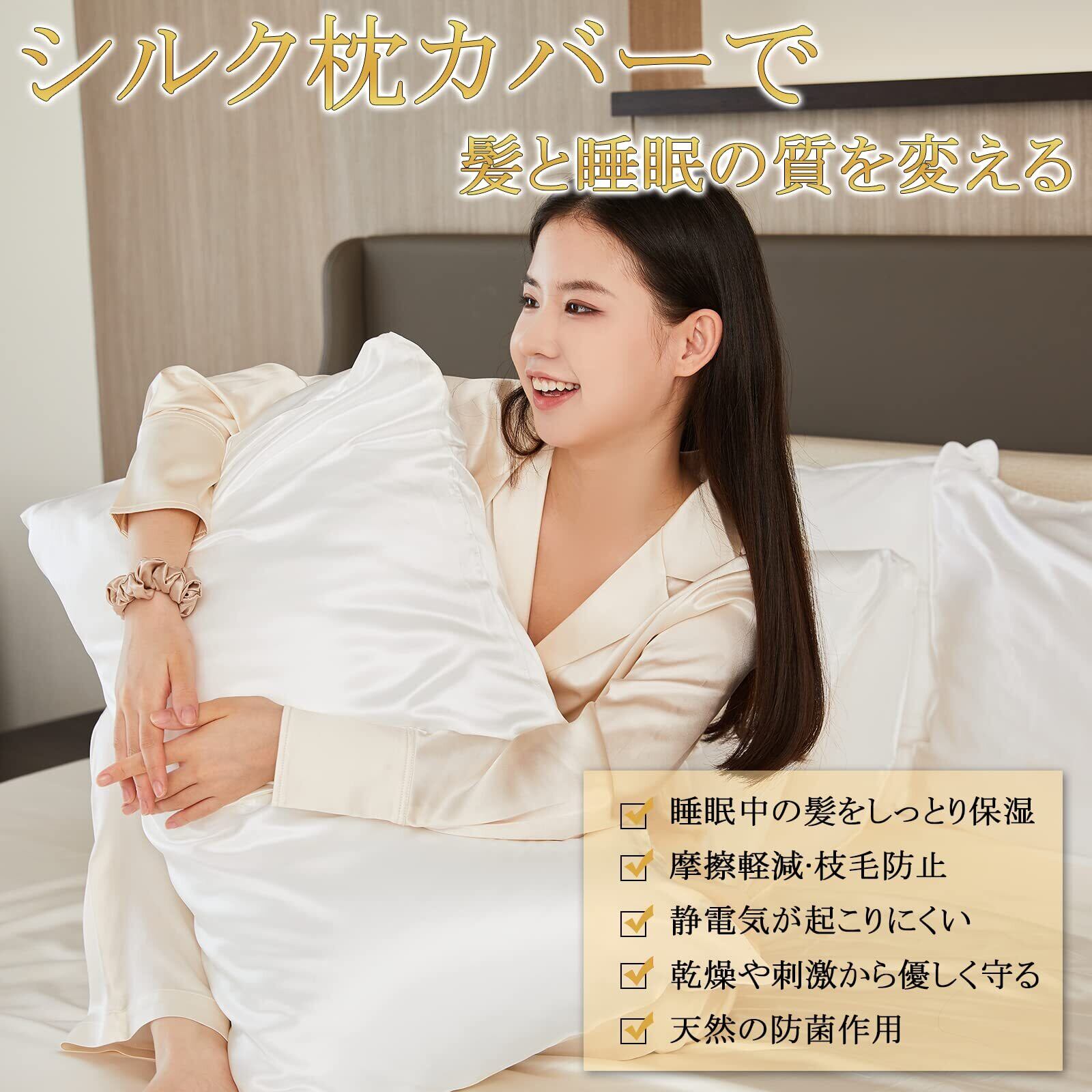 【美容枕カバー】シルク製の枕カバーは、就寝時の乾燥や髪の摩擦によるダメージを最小限に抑え、翌朝にはまとまりのあるサラサラ髪に!優れた保水性や抗酸化作用により「肌の万能薬」とも言われたシルクは髪や肌のケアにピッタリ!