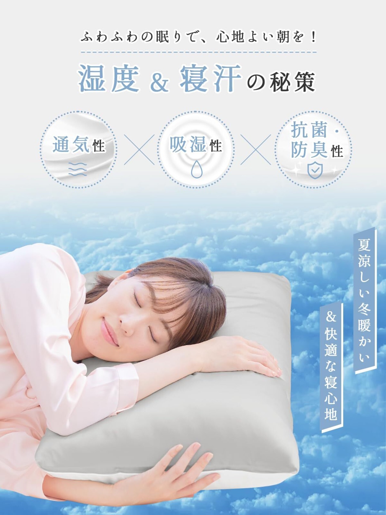 【通気性+吸湿性+抗菌・防臭】シルクは優れた優れた通気性、吸湿性と放湿性を持ち、肌の汗を素早く吸収、温度調節を助けます。 夏は涼しく、冬は温かく、四季を通して快適な睡眠環境を提供します。