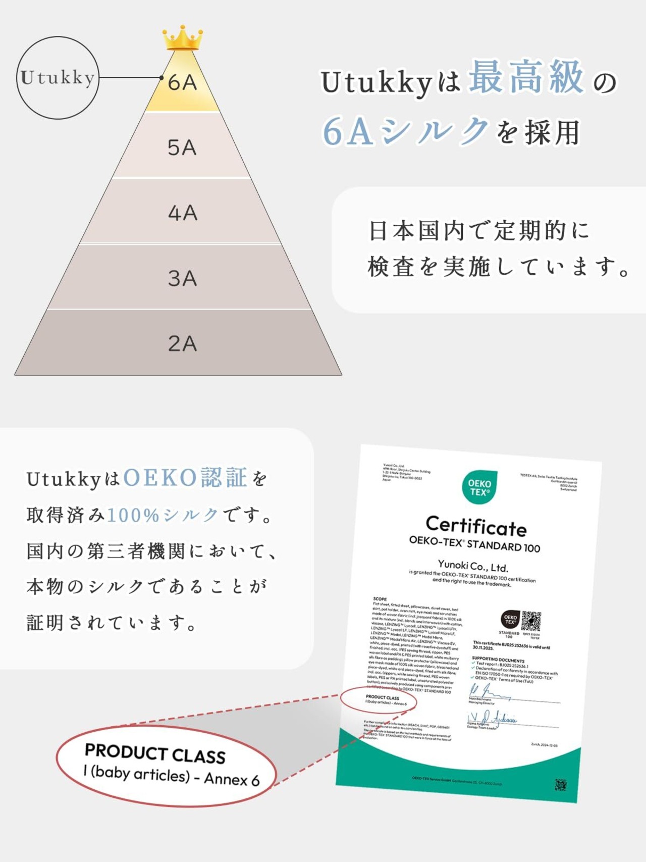【OEKO認証の100%シルク】Utukkyは世界最高水準の安全基準OEKO認証を取り得済み、安心・安全なシルクです。表面は6Aランク洗えるシルクを100%使用して、お誕生日、母の日、父の日、バレンタインデー、敬老の日、クリスマス、新築祝い、結婚祝いなどのギフトにもおすすめです。
