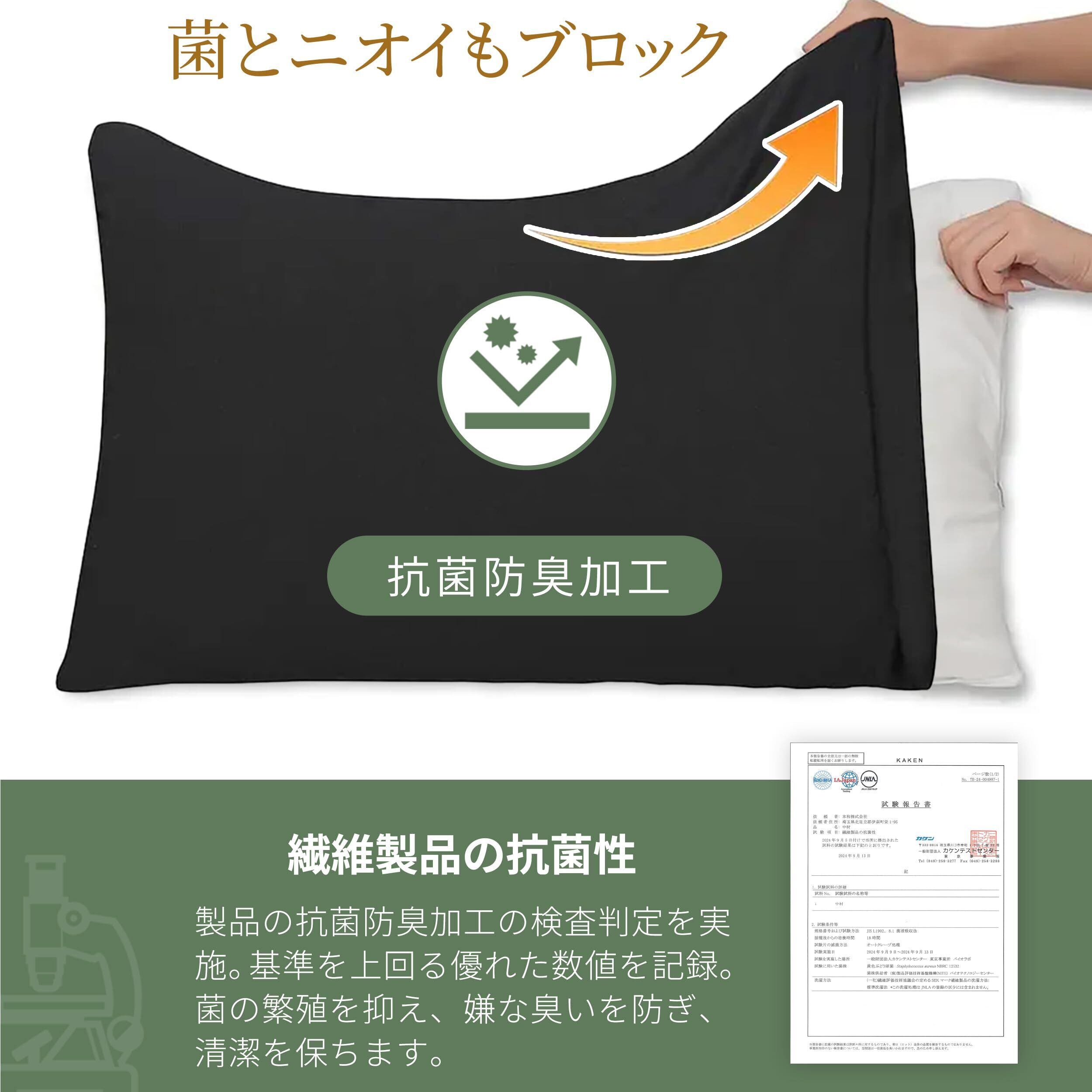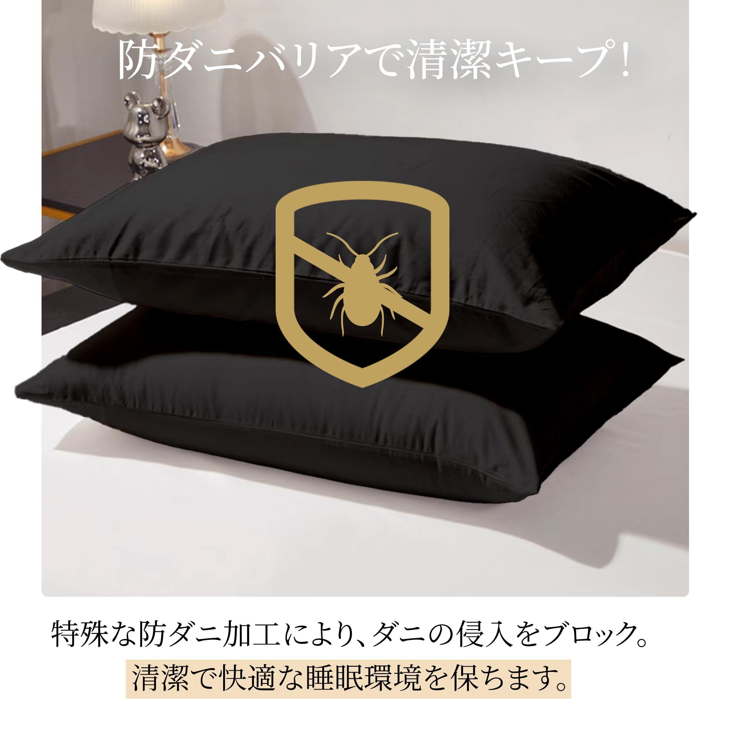 枕カバー まくらカバー 43×63cm ブラック ポリエステル綿100% 防ダニ99.9% 抗菌防臭 自動消臭繊維 敏感肌対応 洗える 封筒式 通気性 ふわふわ 柔らかい ホテル仕様ピローケース