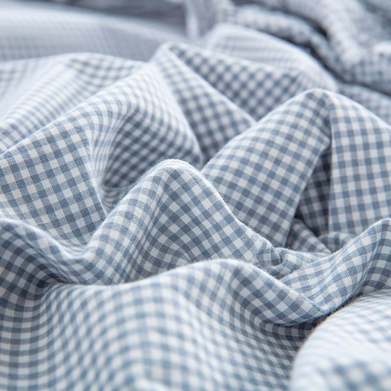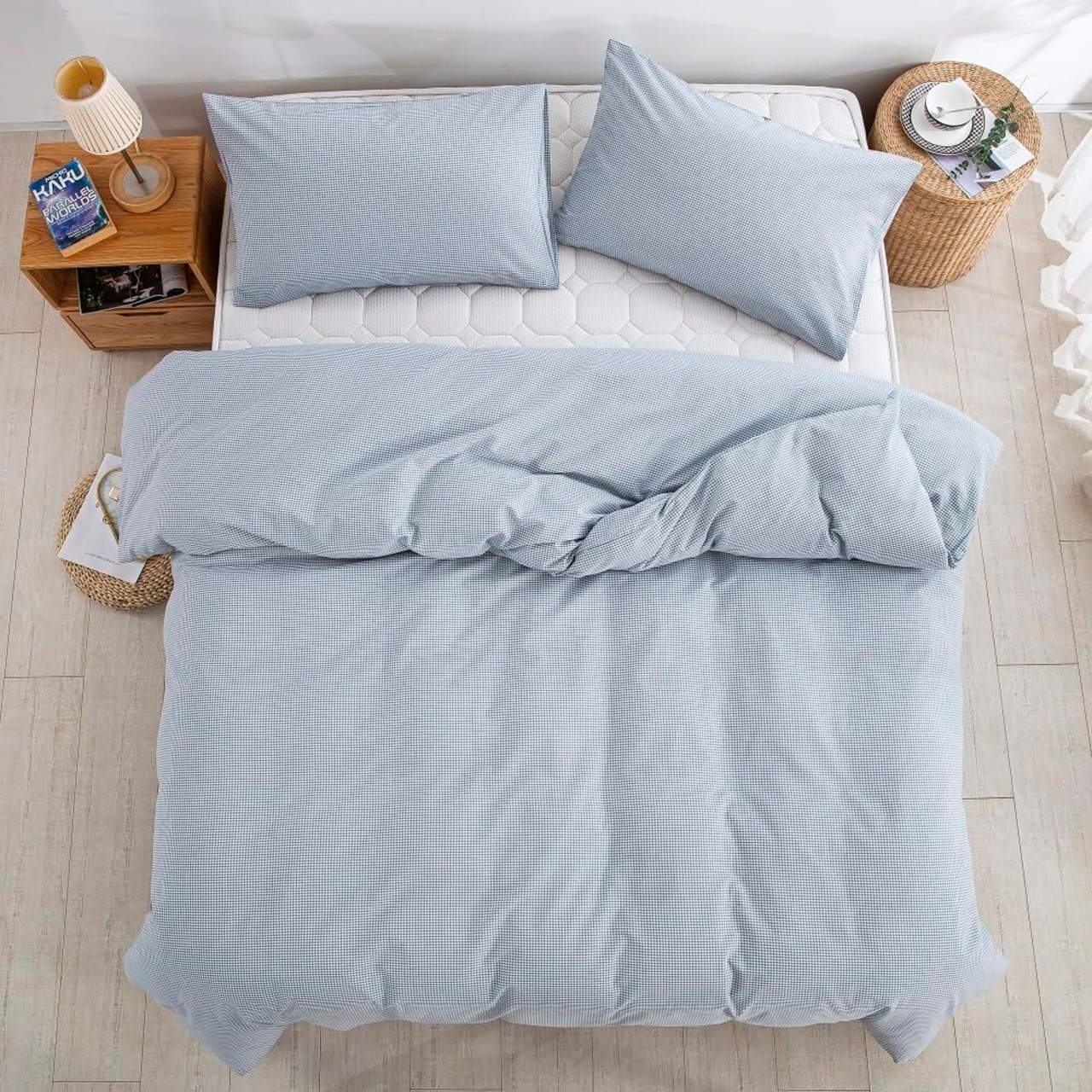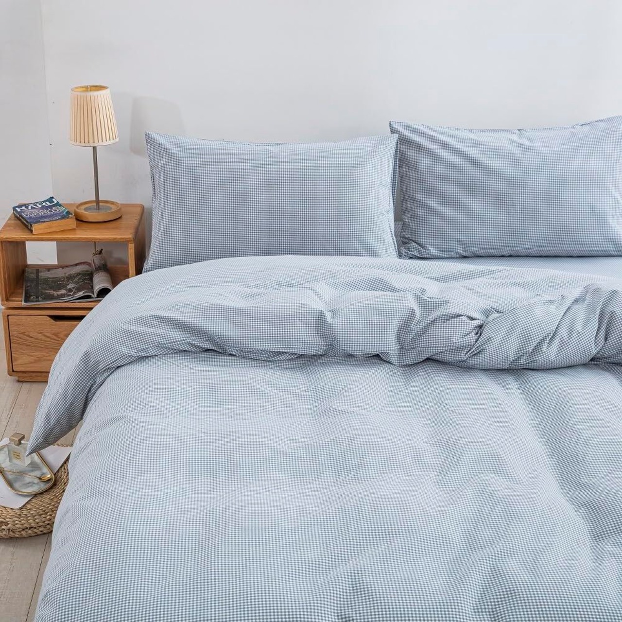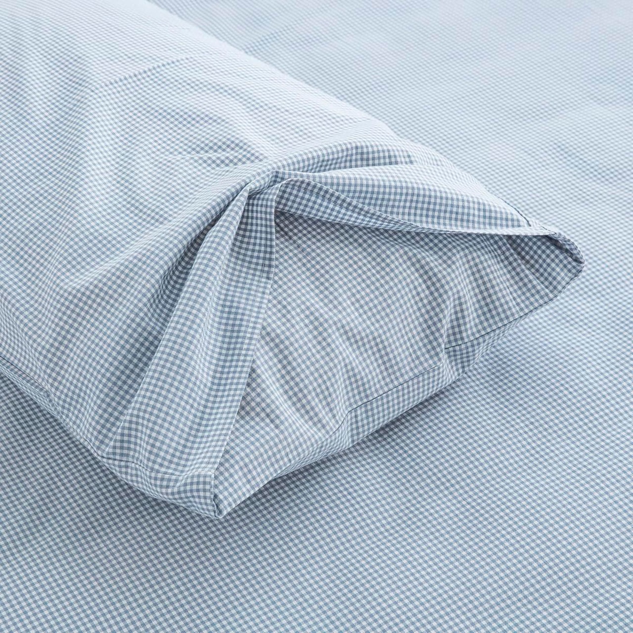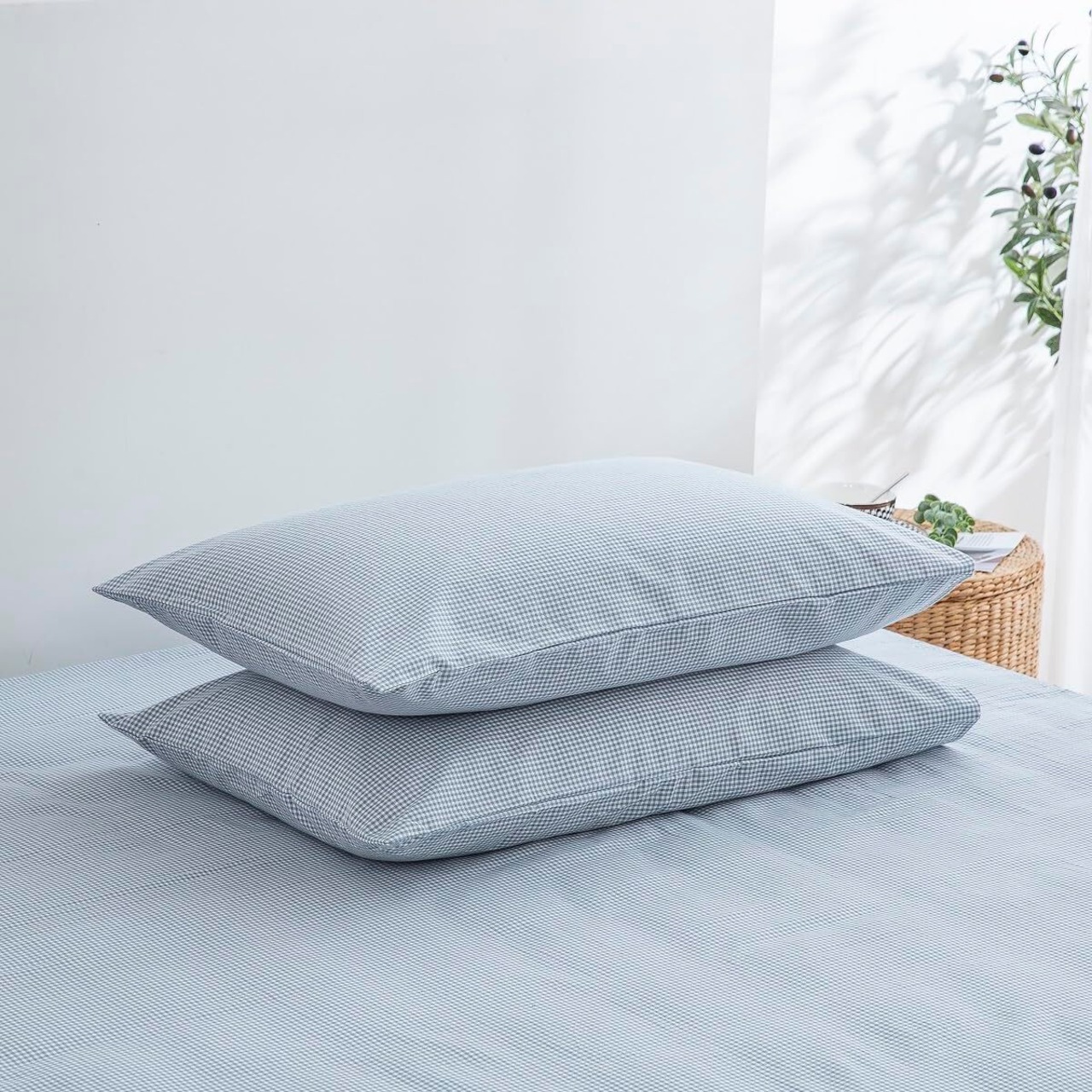 【枕カバー 2枚組】オーガニックコットン ピロケース 洗いざらしの綿100% 枕カバー2枚 43x63㎝ 防ダニ 抗菌防臭加工 封筒式 ギンガムチェック サックス