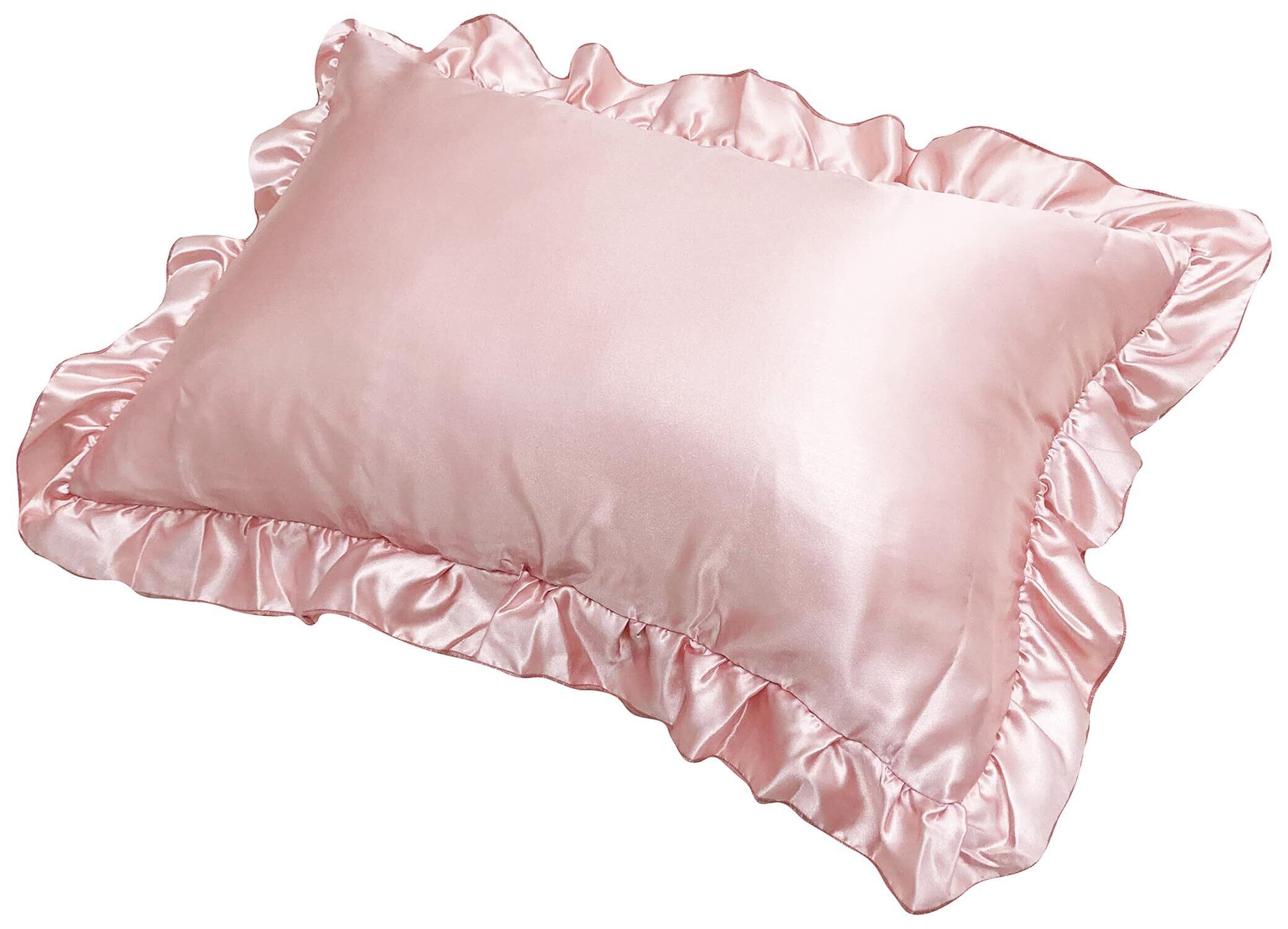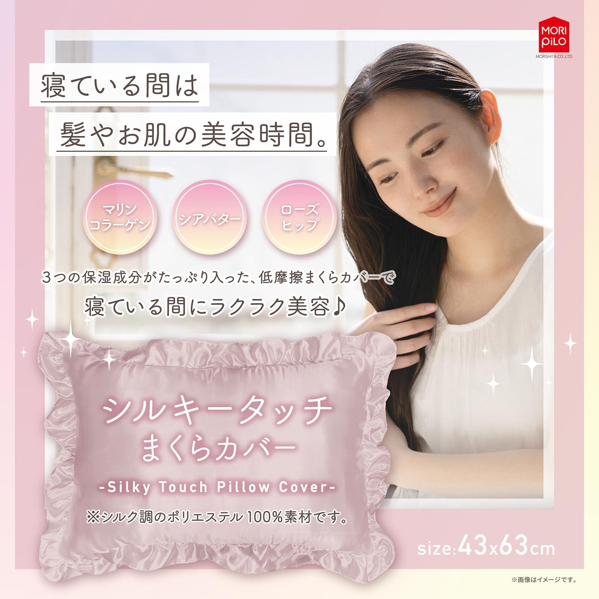 MORIPiLO シルク枕カバー 髪に優しい トリプル保湿 (シルキータッチ ピローケース) 43x63cm シャンパンピンク とろける肌触り フリル付き 洗える 子供 大人兼用 可愛い 両面 silk pillow case まくらのモリシタ