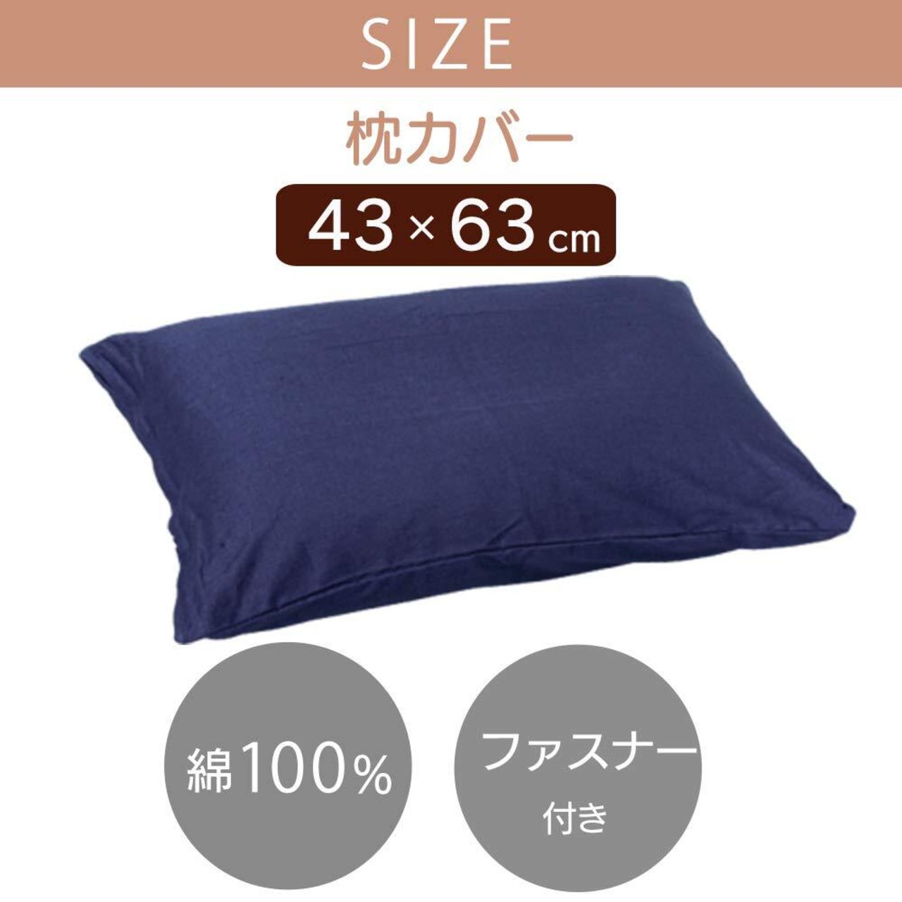 アイリスオーヤマ 枕カバー 綿100% ピローケース 選べる8色 全開ファスナー 着脱簡単 洗える 43×63cm ネイビー CMP-4363