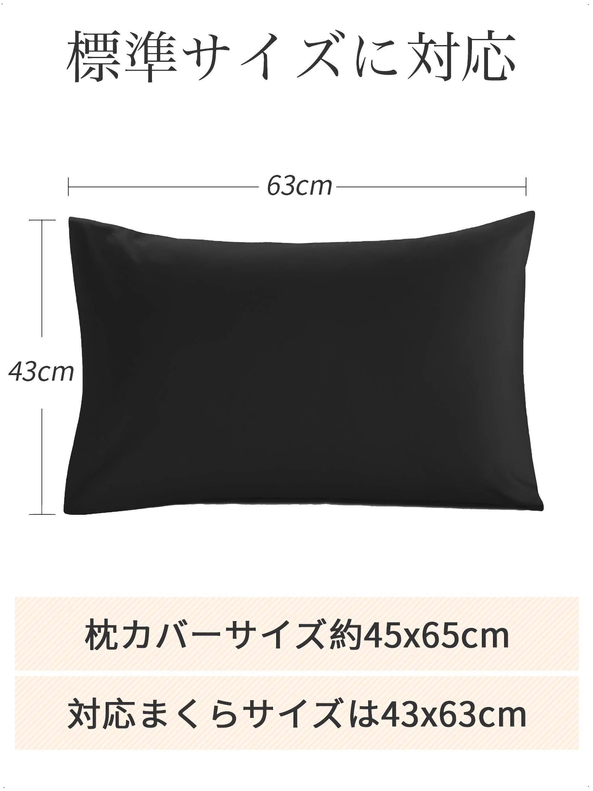 【ホテル品質】43x63cm 枕カバー 綿100% 防ダニ・防臭 おしゃれ封筒式 コットン ピローケース 柔らかい ブラック