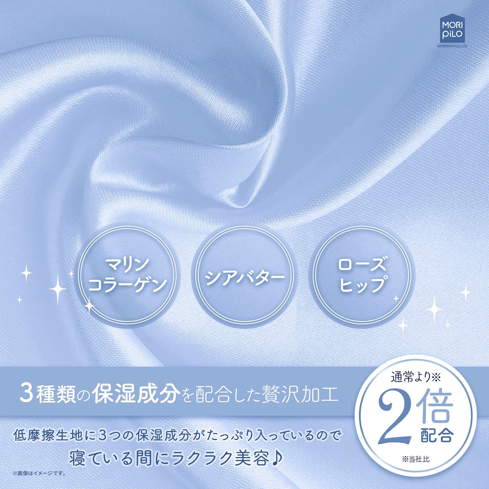 ●低摩擦生地に3つの保湿成分(マリンコラーゲン・シアバター・ローズヒップ)がたっぷり入って、髪とお肌にやさしい枕カバーです。