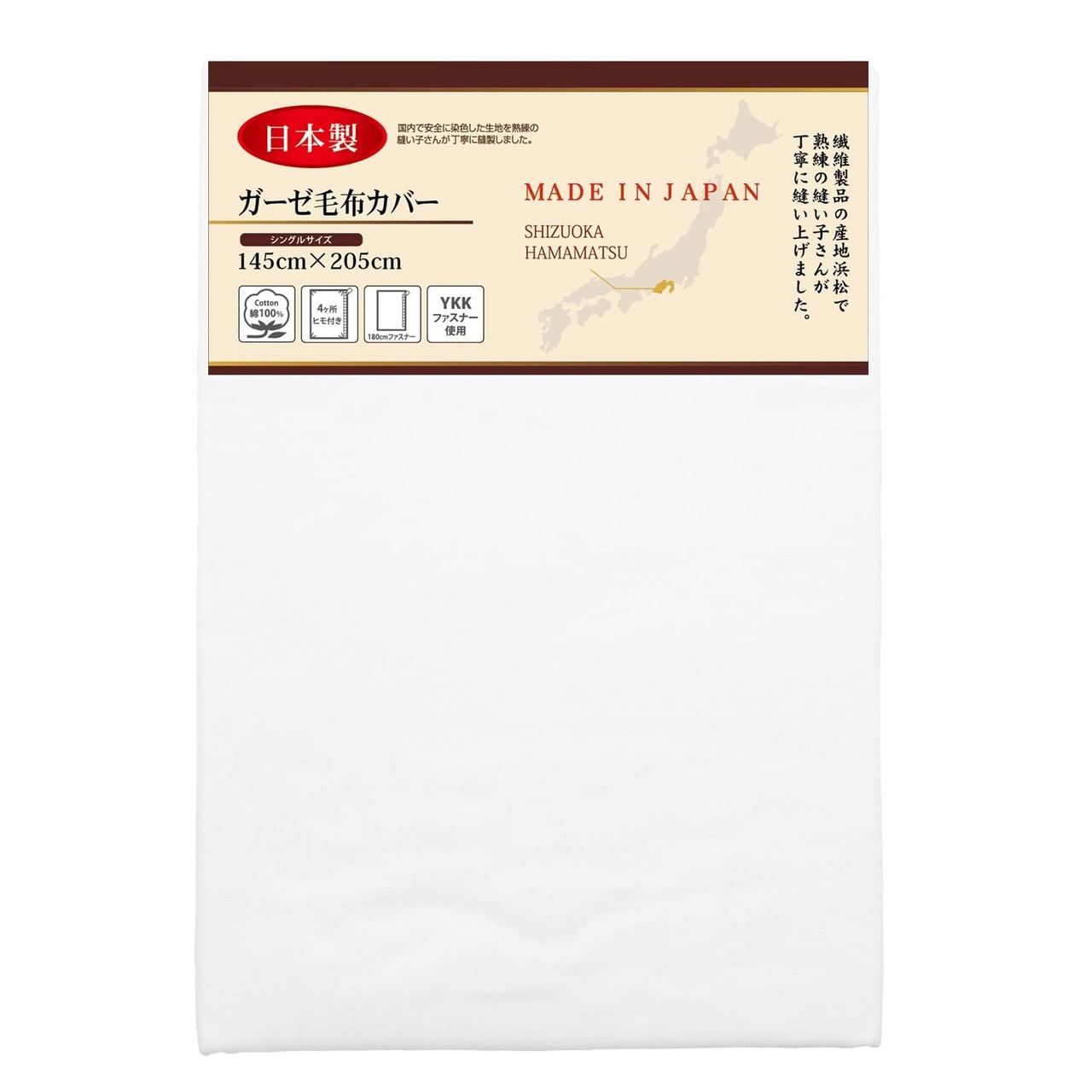 メリーナイト 毛布カバー ガーゼ ホワイト シングル 約145×205cm 日本製 綿100% 軽量 通気性 ふんわりやさしい肌触り 吸水性 洗える すぐ乾く 衛生的 清潔 毛布の毛羽の飛散を防ぐ 秋冬寝具 5241-06