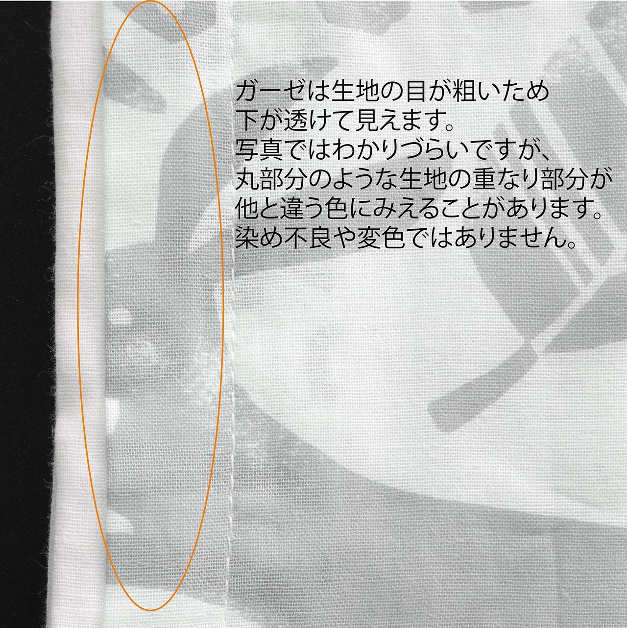 【素材】吸汗性に優れ、オールシーズン快適な天然素材・綿100%ガーゼ生地を使用。裏地には日本古来の「和晒」工程を経た白無地ガーゼ生地を使用。綿に余計なストレスを与えない加工のため繊維の形状が壊れにくく、綿本来のやさしい風合いに仕上がっています。