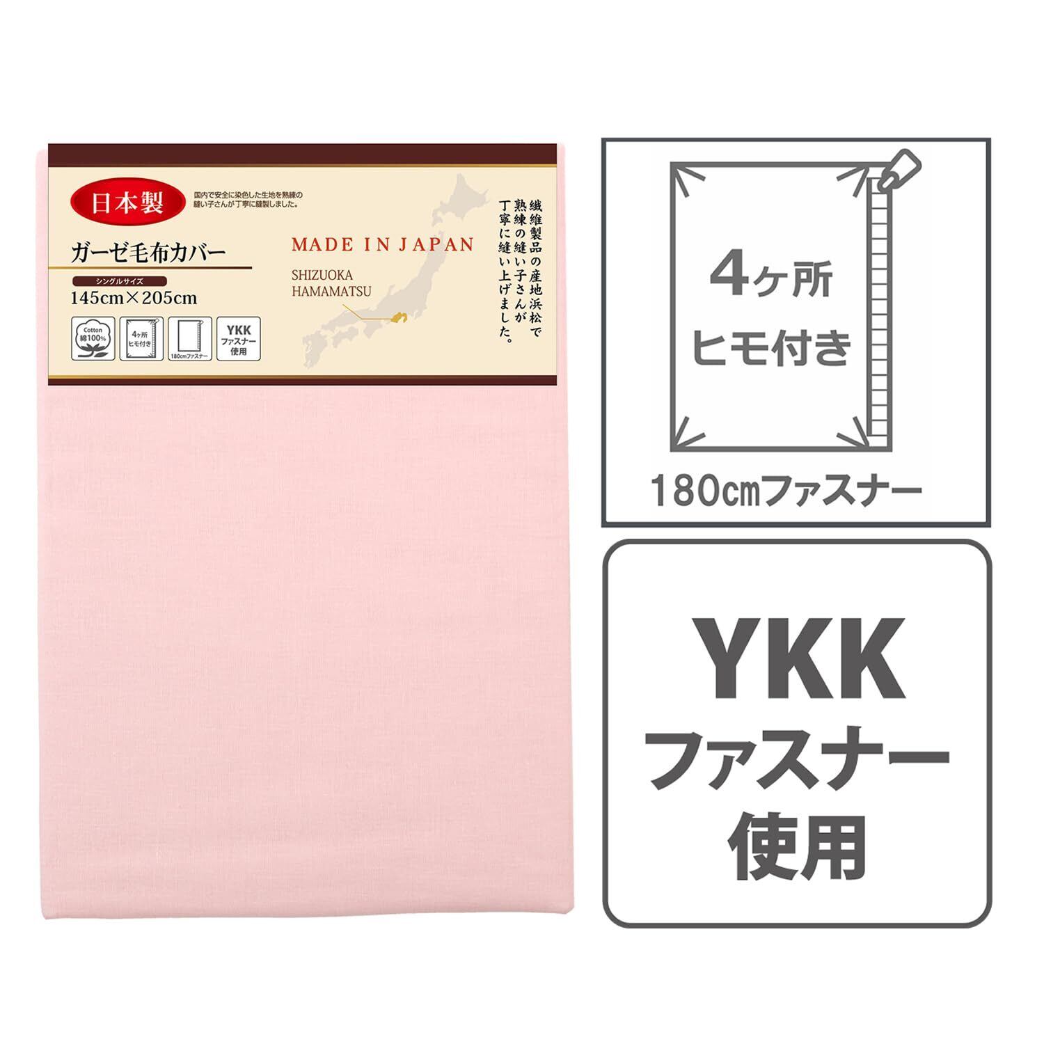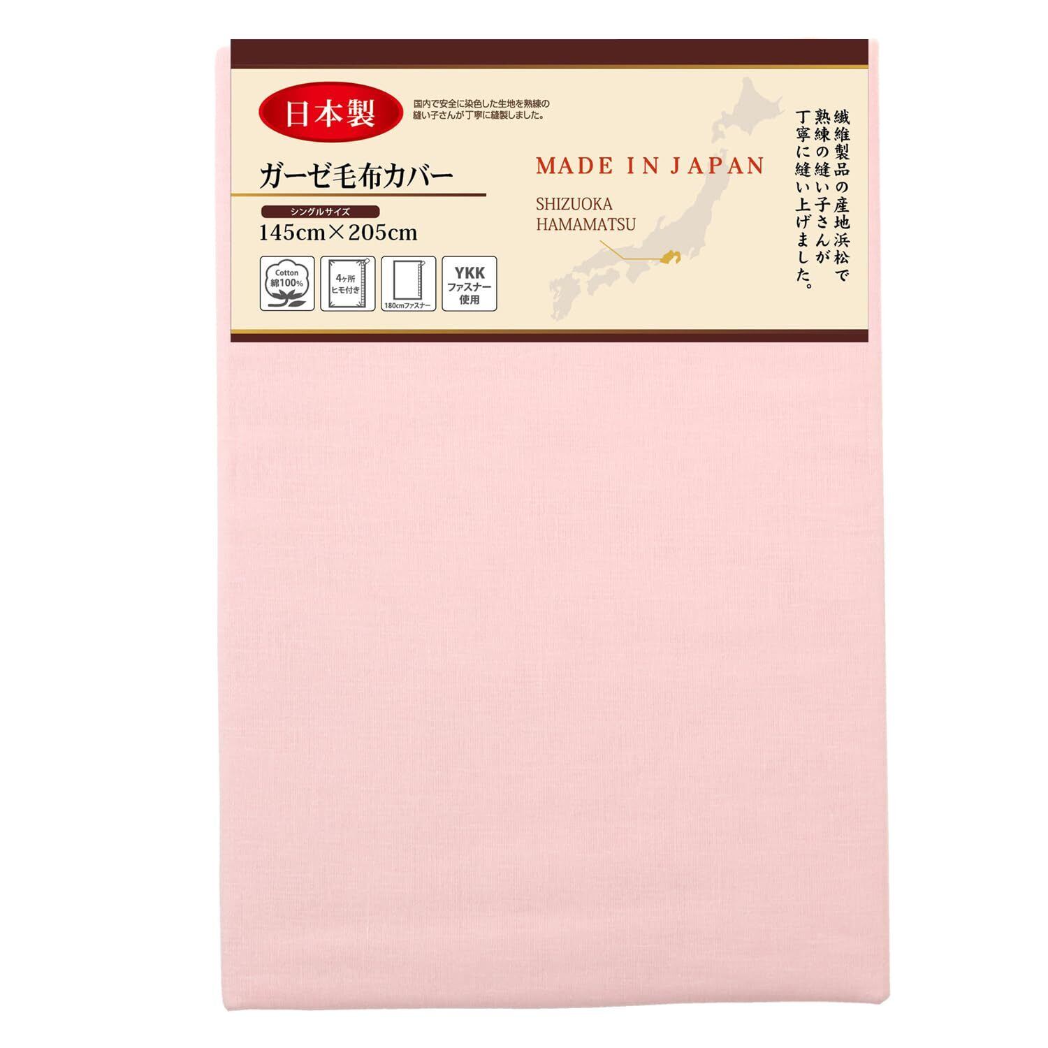 【特別価格】メリーナイト 毛布カバー ガーゼ ピンク シングル 約145×205cm 日本製 綿100% 軽量 通気性 ふんわりやさしい肌触り 吸水性 洗える すぐ乾く 衛生的 清潔 毛布の毛羽の飛散を防ぐ 秋冬寝具 5241-16