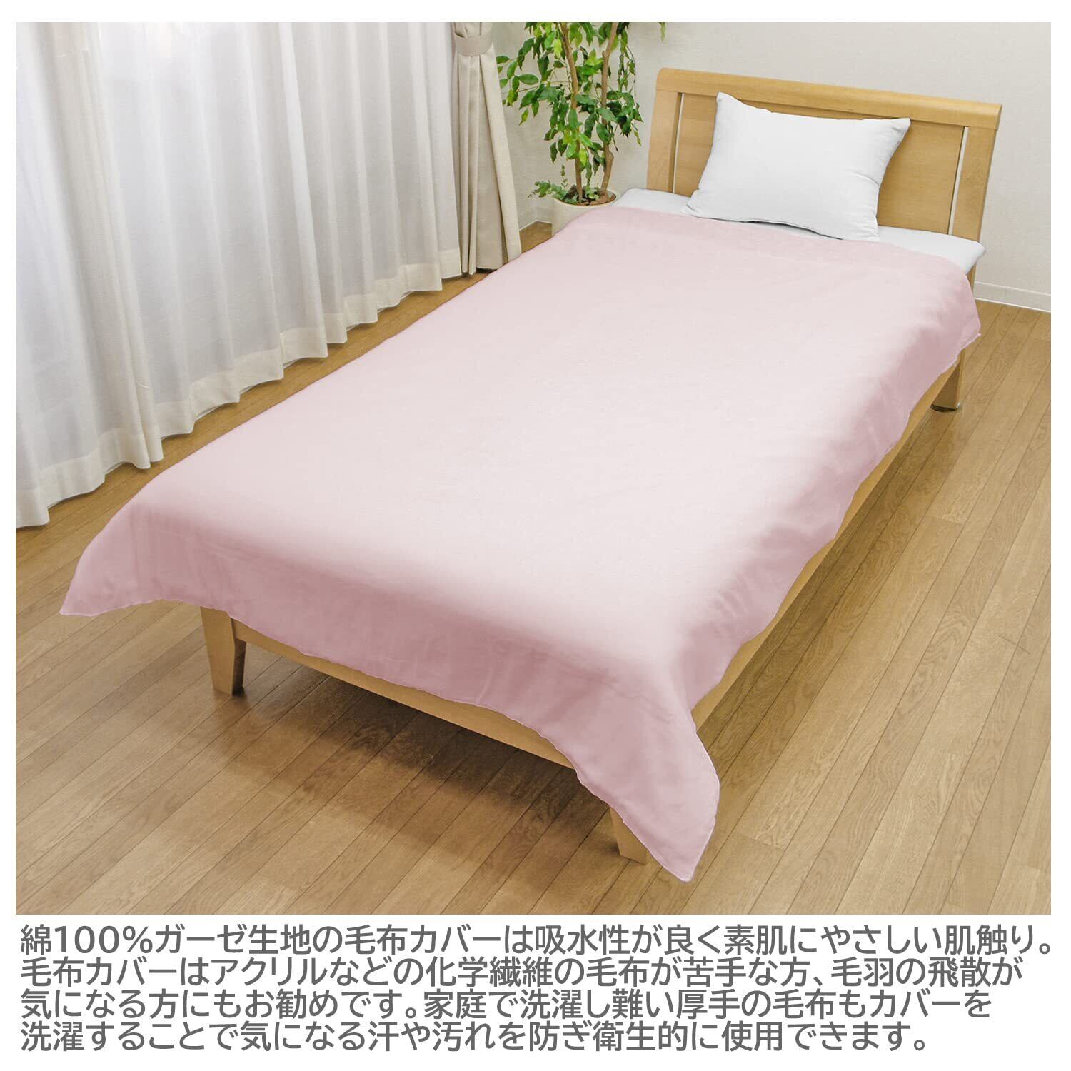 メリーナイト 毛布カバー ガーゼ ピンク シングル 約145×205cm 日本製 綿100% 軽量 通気性 ふんわりやさしい肌触り 吸水性 洗える すぐ乾く 衛生的 清潔 毛布の毛羽の飛散を防ぐ 秋冬寝具 5241-16