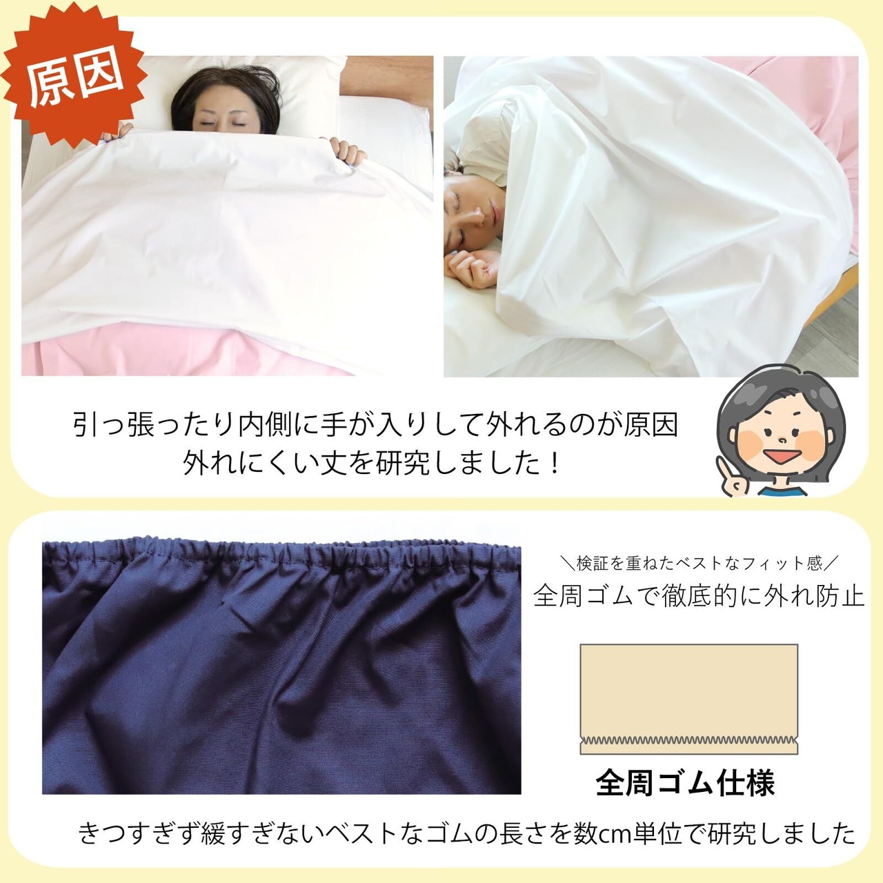 [IKS] 衿カバー ロング シングル 150×75cm 綿100 日本製 全周ゴム 外れにくい SEK加工 抗菌防臭 高密度200本 シンプル 無地 (ホワイト)