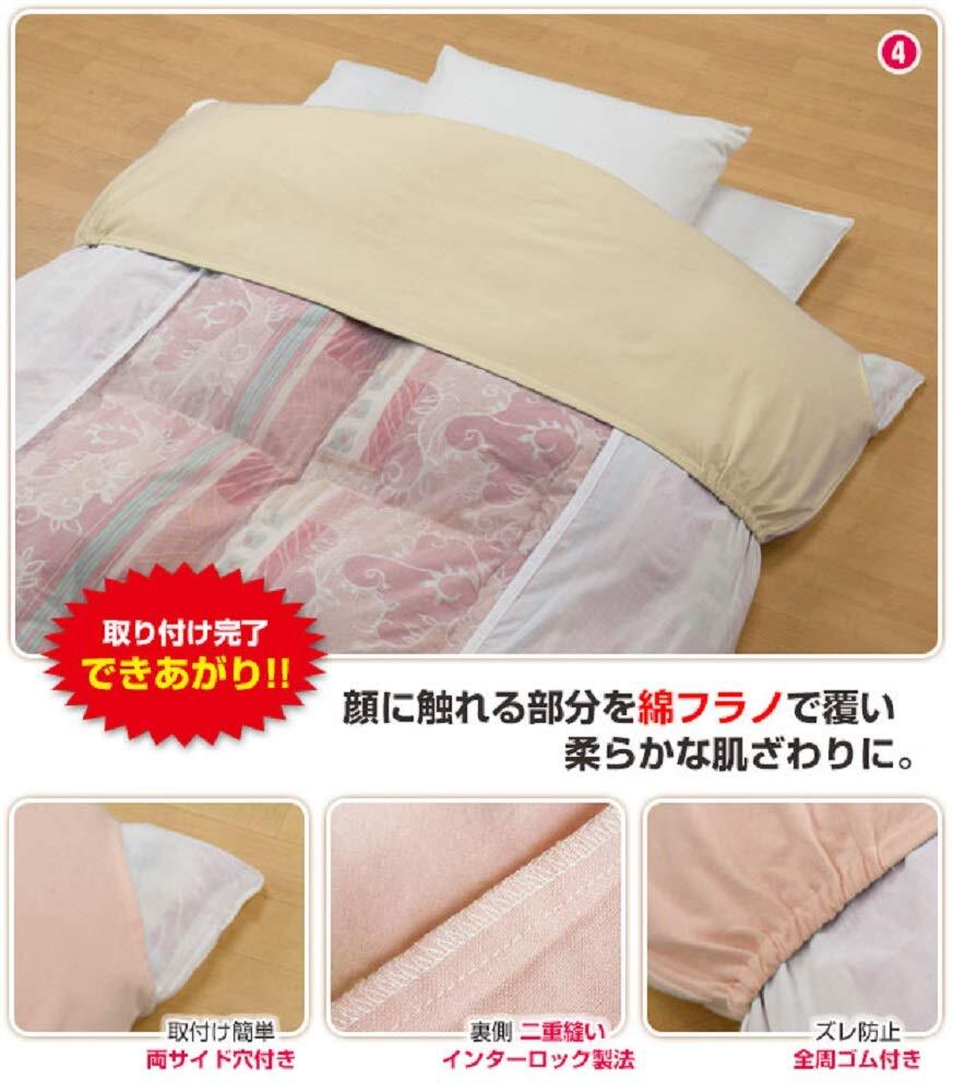 天然繊維 綿100%「綿フラノ衿カバー」は、ふんわりソフトな肌触りで心地よく眠れます。汚れやすい衿元をカバーするアイデア商品で顔に触れる部分が柔らかく心地良いです。 両サイドにゴムがついており布団のズレも抑え、 洗濯可能ですので清潔に使えます。「綿フラノ生地」はヨコ糸に甘撚りの双糸を打ち込み、片面を針状のものでかいて毛羽立たせた「起毛加工仕上げ織物」です。「起毛」で立ち上がった極細繊維の毛羽が空気を保持し熱を逃がしにくい特性があり温かさを保ちます。
