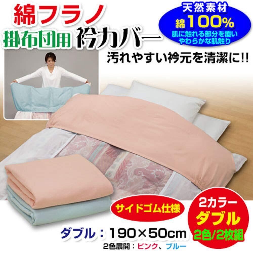 【特価セール】衿カバー ダブル 襟カバー 掛け布団用 メーカー直販 あったか起毛 綿フラノ ダブル 190×50cm 綿100% サイドゴム付き (2色/2枚組)