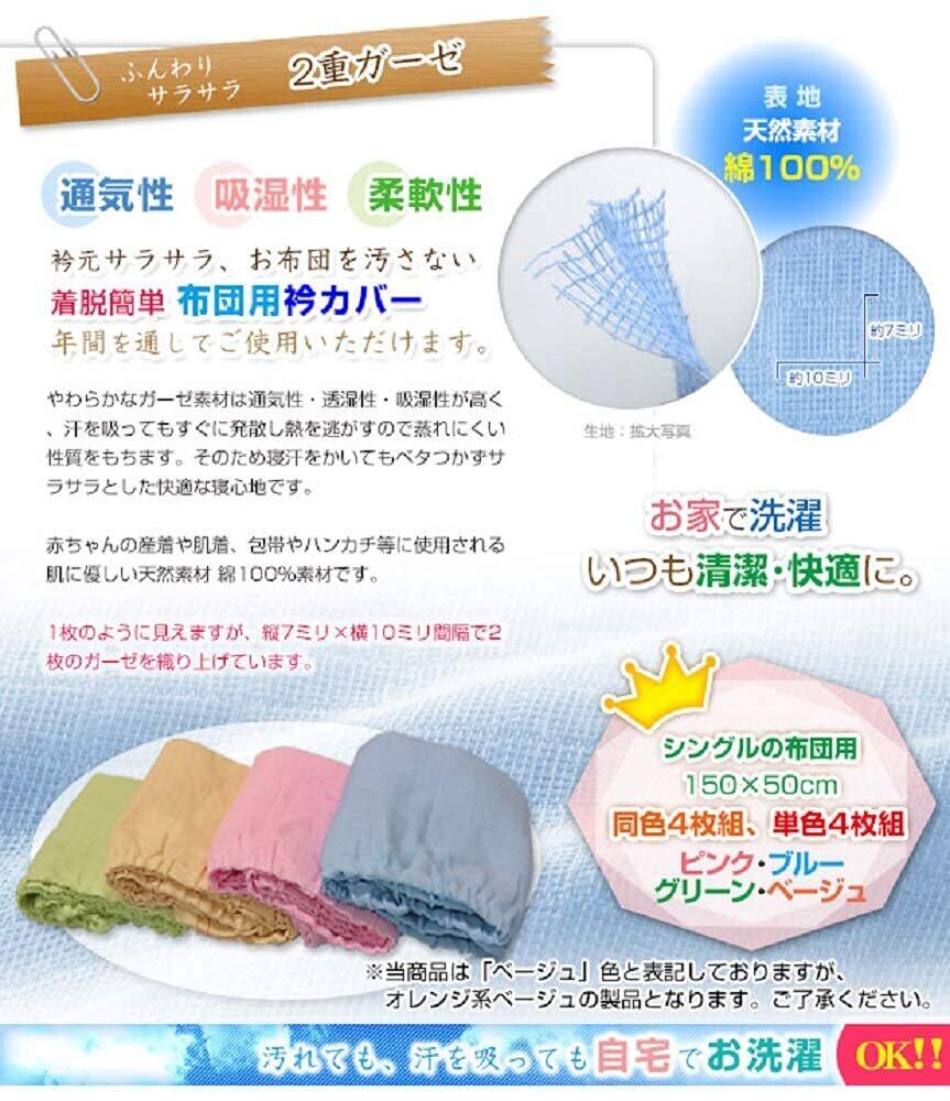 サイズ シングル 150×50cm 2重ガーゼ 衿カバー シングル 全周ゴム付き