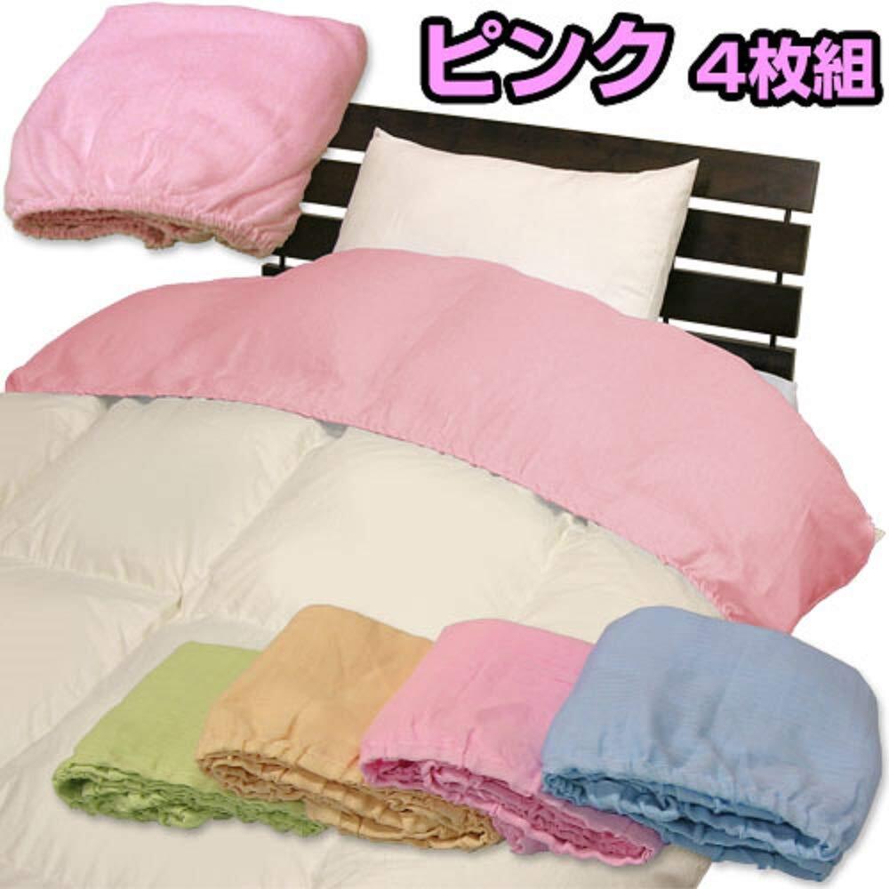 色 ピンク/4枚組 掛け布団用 衿カバー 綿100% 肌にやさしいカーぜ生地