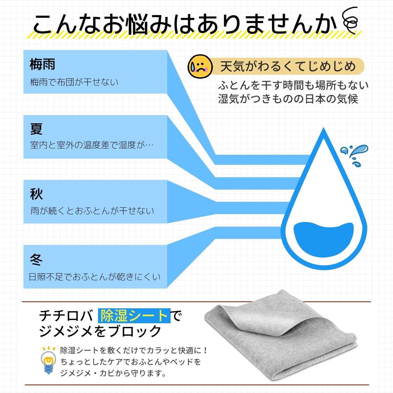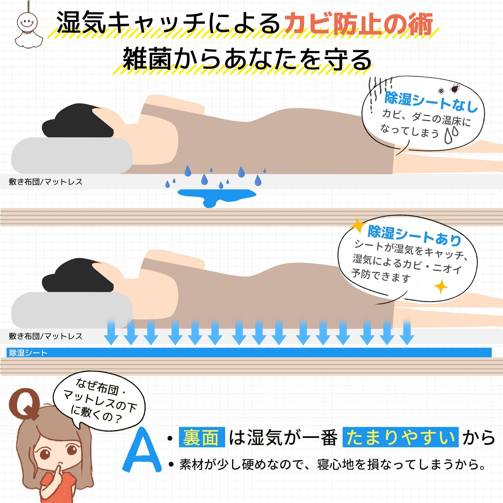 布団の下に除湿シートを敷くだけで、簡単に湿気退治。