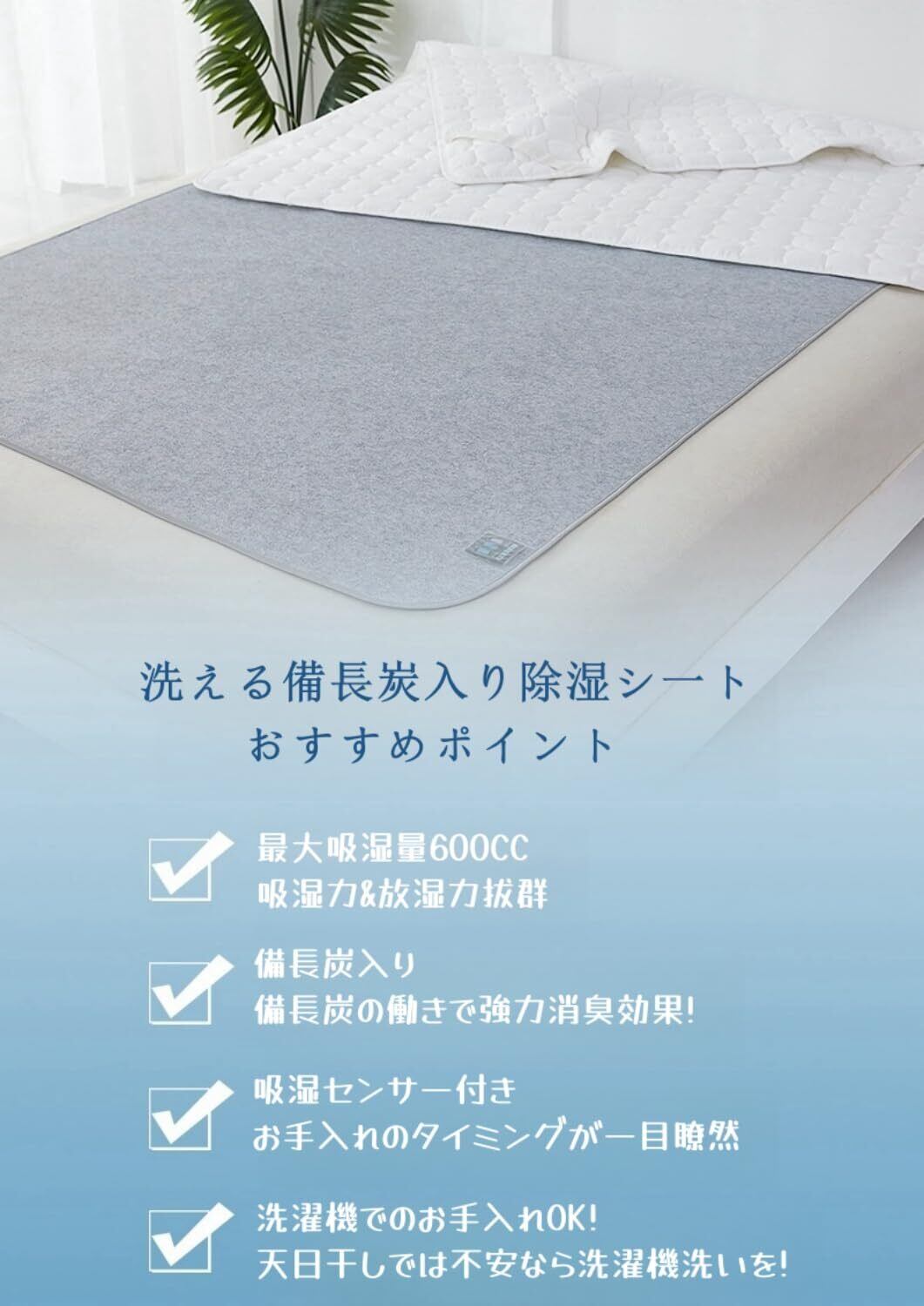 除湿シート 備長炭 2倍シリカゲル入り 汗や湿気を吸収 イヤな臭いも消臭 敷くだけ簡単 梅雨結露対策 吸湿センサー付き 洗える 湿気取り 繰り返し使える 吸湿シート マットレス ベッド 布団 健康守る STMX-610