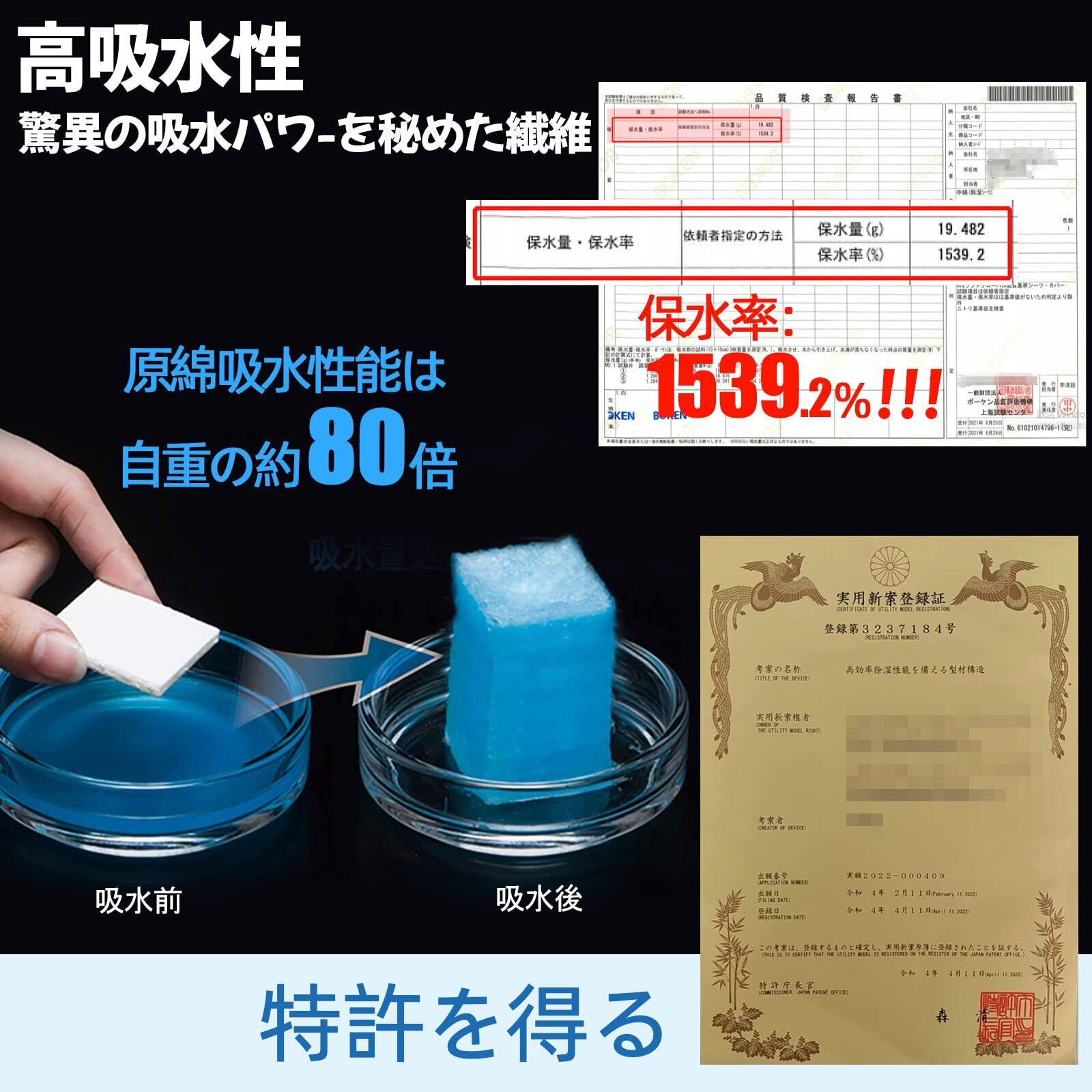 【7倍の吸湿力】日本専門的な検査機関BOKENの品質報告書によると、MeillyHoomi除湿シートの保水率は1539.2%になっており、吸湿性能は棉の7倍で、約普通B型シリカゲル粒子の2倍です