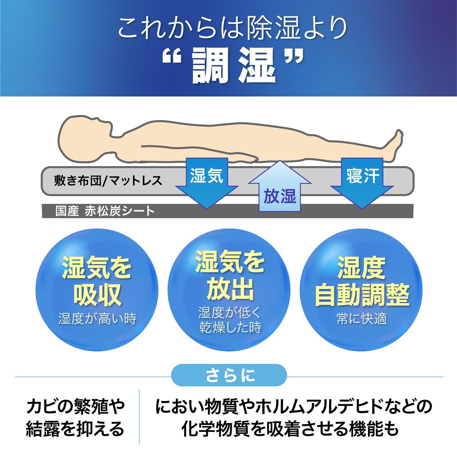 赤松炭シート 除湿シート 調湿シート 日本製 国産 洗濯不要 布団の下 吸湿 防カビ 消臭 化学物質低減 寝具用 マットレス