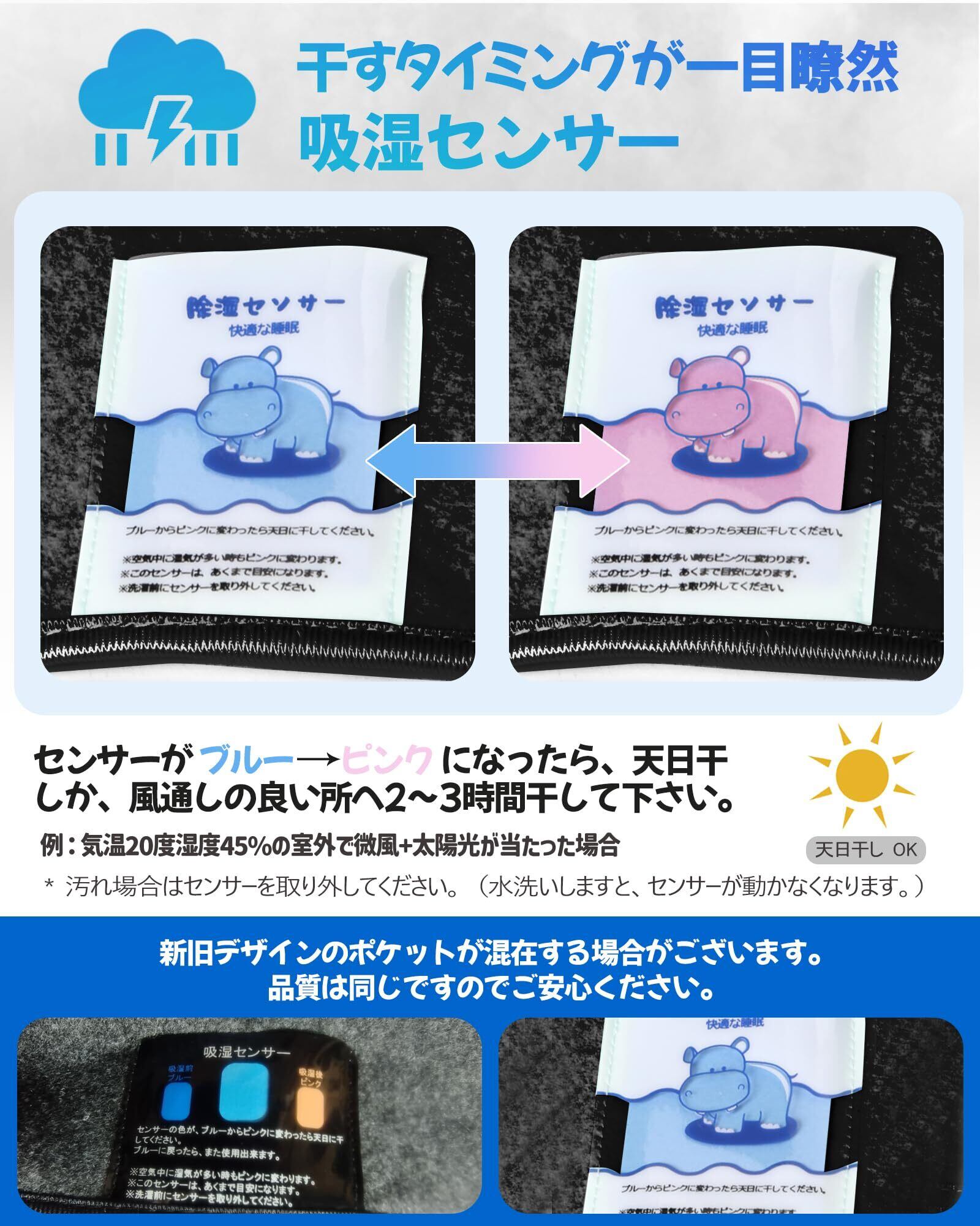 繰り返し使える: 除湿マットの吸湿量が増えると、センサーの色が青からピンクになったら、天日干しか、風通しの良い所へ2.3時間干して下さい。センサーは青に戻ったら、吸湿力が回復するので、長くお使いいただけます