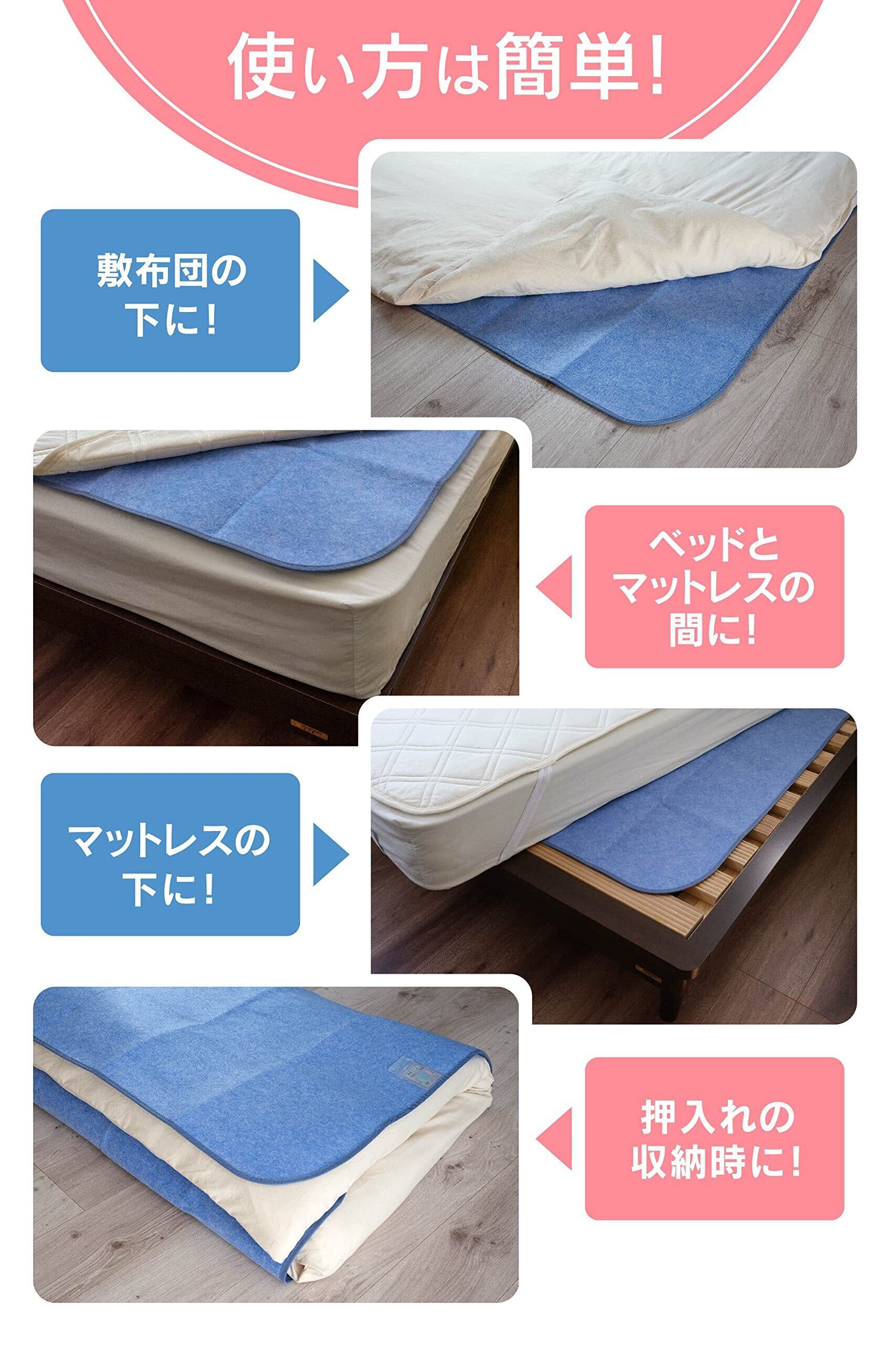 【眠りをトータルケア】寝具環境がジメジメして寝付けない、臭う、ダニ・カビ・菌が気になる...などのお悩みをお持ちの方に。95%消臭!90%防ダニ・防カビ!ダニやカビを寄せつけず追い出し、快適な眠りをお届けします。人間は一晩にコップ1杯分の汗をかくと言われており、背中が密着する敷き布団やマットレスの裏側に溜まった湿気はたまり放題...。毎日の寝汗で湿気の温床となっているためカビも発生しやく、臭いの原因にも。快適な眠りをお求めの方におすすめの除湿シートです。