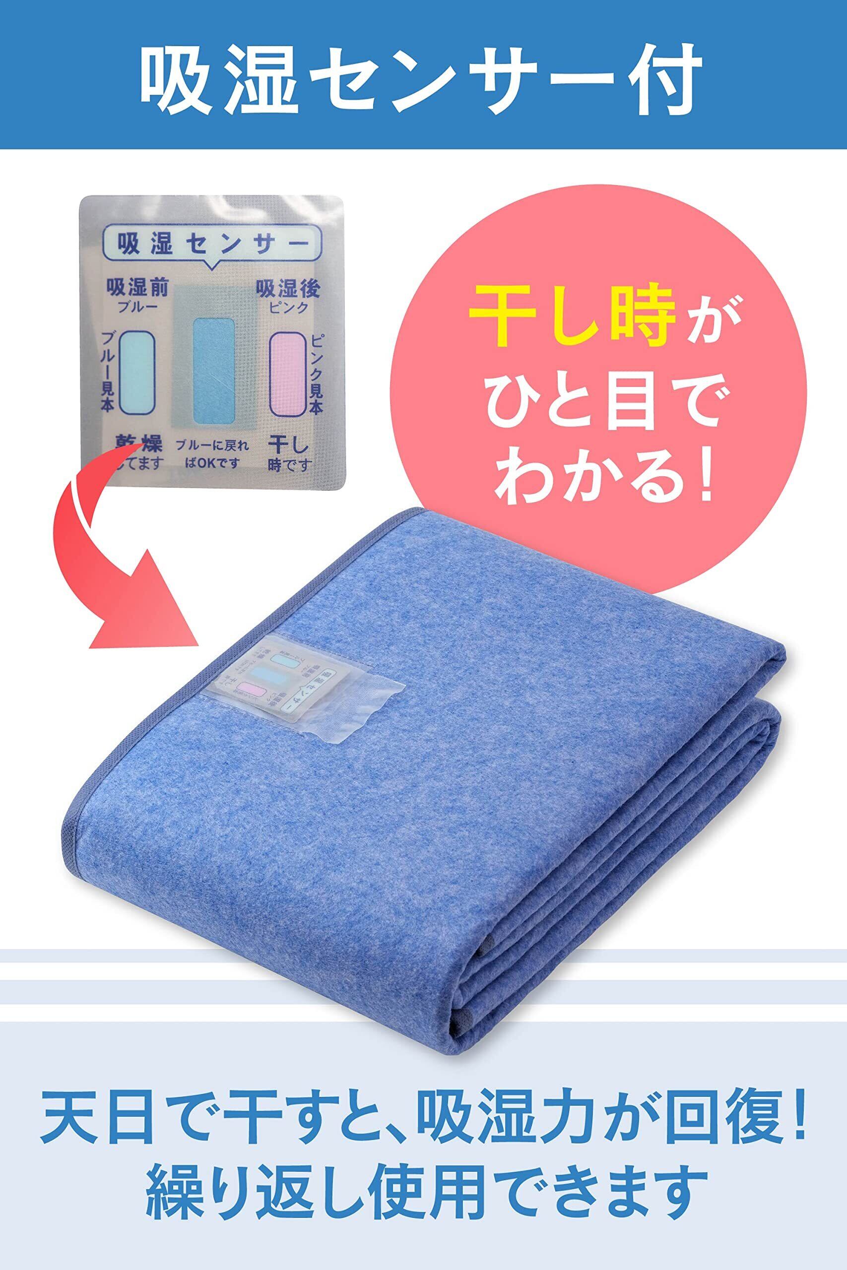 【干し時がわかる吸湿センサー付き】吸湿センサーが除湿シートの干し時をお知らせします。色が青からピンクに変わったら干し時!ひと目でわかるので、干すタイミングに迷うことなく常に清潔にお使いいただけます。また、天日で干すと吸湿力が回復するため、繰り返しお使いいただけるので経済的!