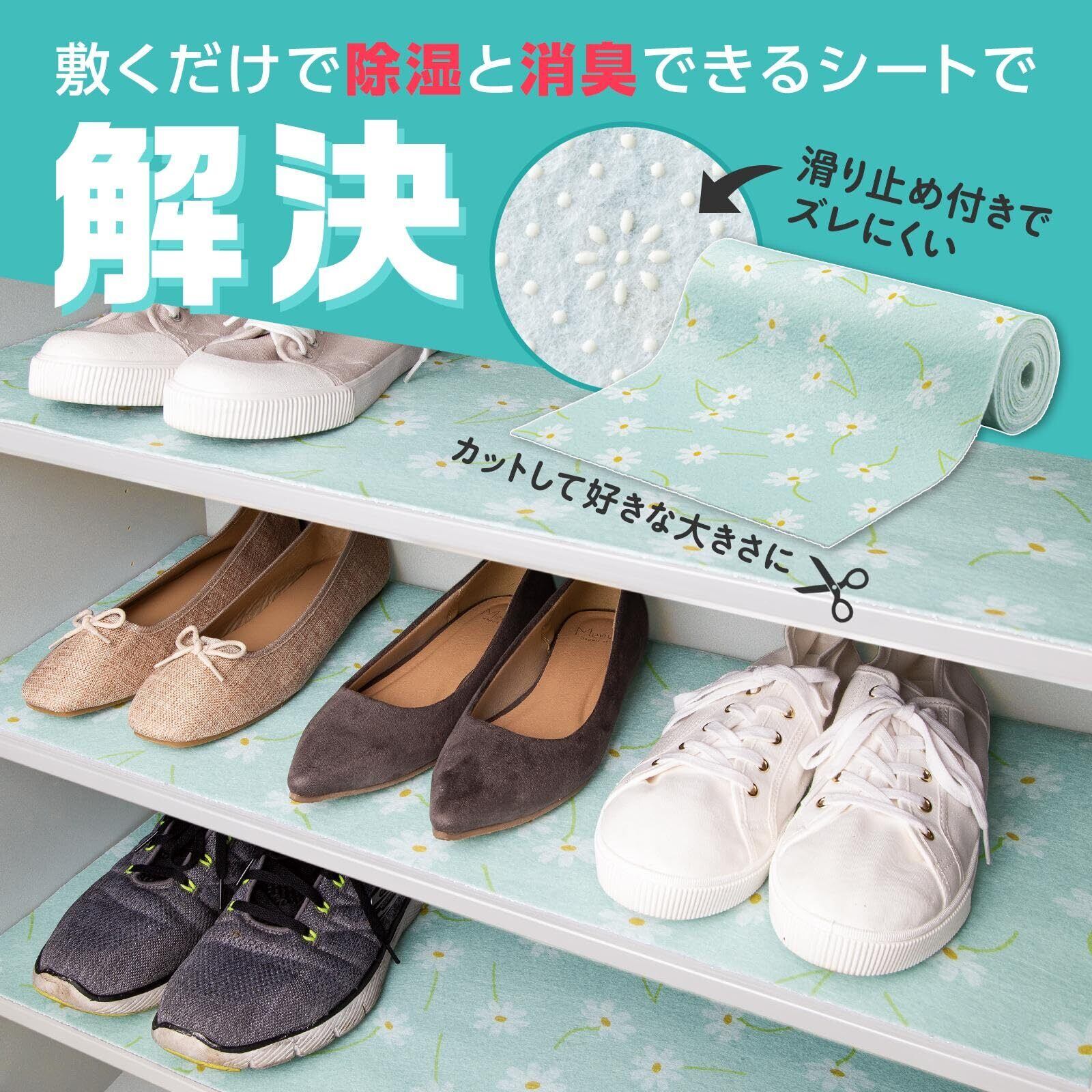 【限定セール】コモライフ 自由にカットできる除湿シート 30×320cm 除湿 消臭 靴箱シート 活性炭 シリカゲル 天日干し 復活