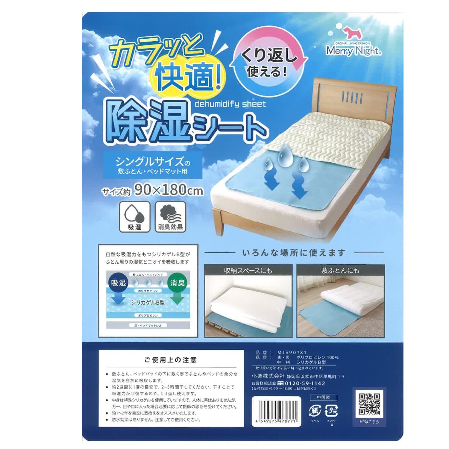 メリーナイト 除湿シート ブルー シングル 約90×180cm カラっと快適 繰り返し使える 湿気とニオイを吸収 敷布団 ベッドマットレス カーペット 押し入れ クローゼット MJS90181