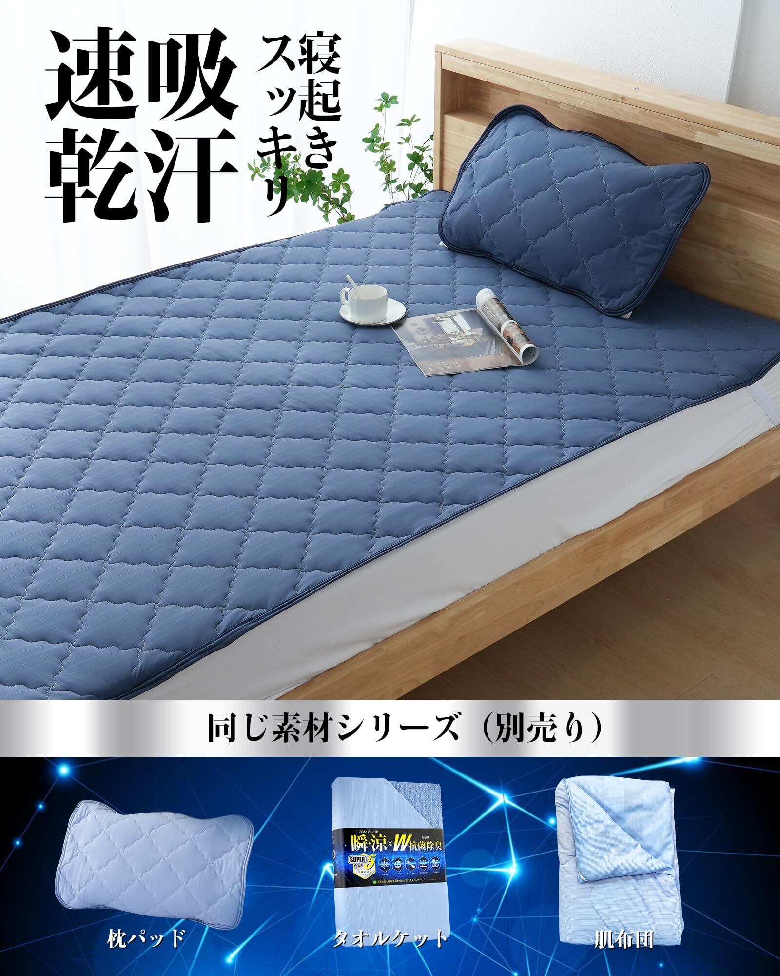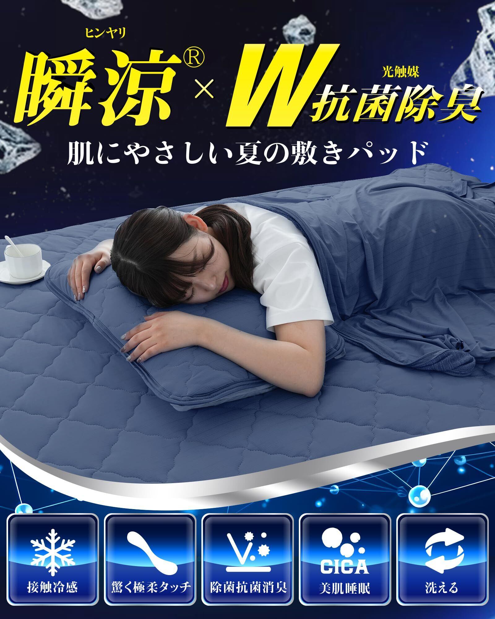 ✍【店長様から】:「朝まで続く快適冷感」、「肌触りの良さ」、「爽快な寝心地」の3大要素がそろった瞬涼シリーズと同様の素材を使った冷感肌布団、冷感タオルケットと冷感枕パッドも開発致しました。セットで使うとさらに冷んやり!是非この機会に、が開発した冷感寝具をご購入し、心地の良さを体験して頂ければ幸いです。