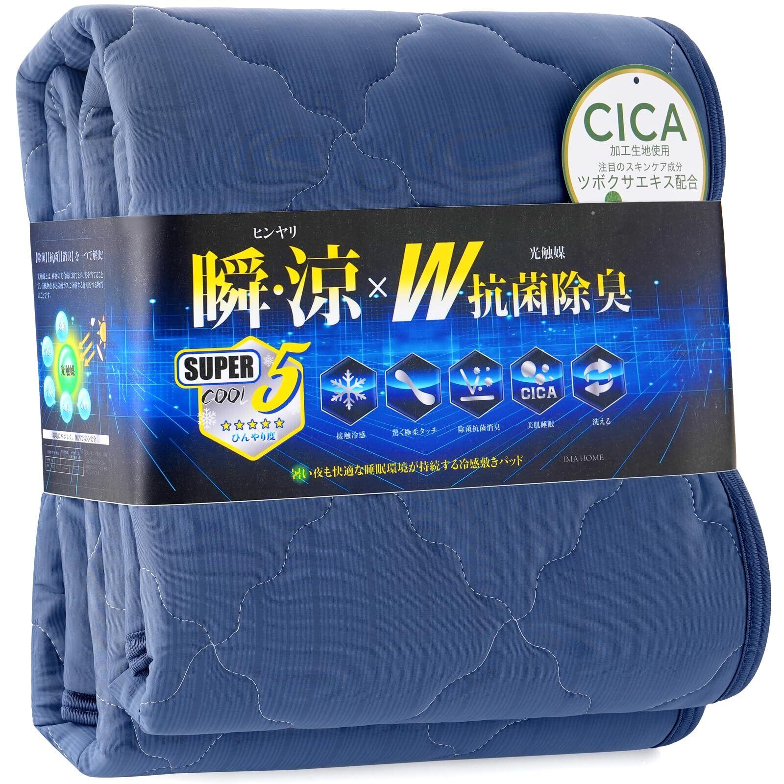 IMA HOME 【Q-max0.531×究極タッチ】 冷感 敷きパッド シングル 夏 W抗菌除菌・防臭防ダニ・極柔タッチ ひんやり敷きパッド 接触冷感 敷パッド れいかんしきぱっど ベッドパッド しきぱっと ひんやり シーツ 吸湿速乾 通気性 洗える (100×205cm ネイビー)
