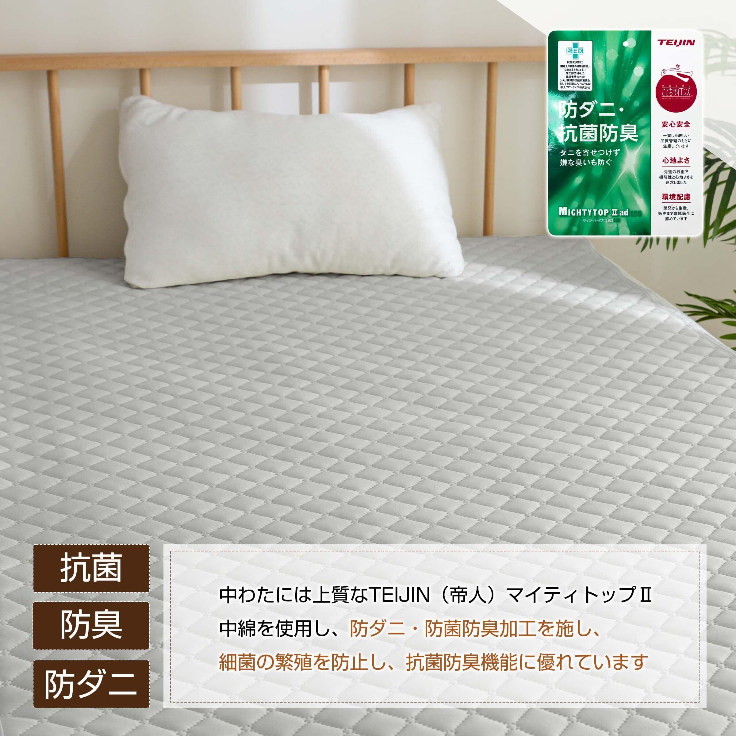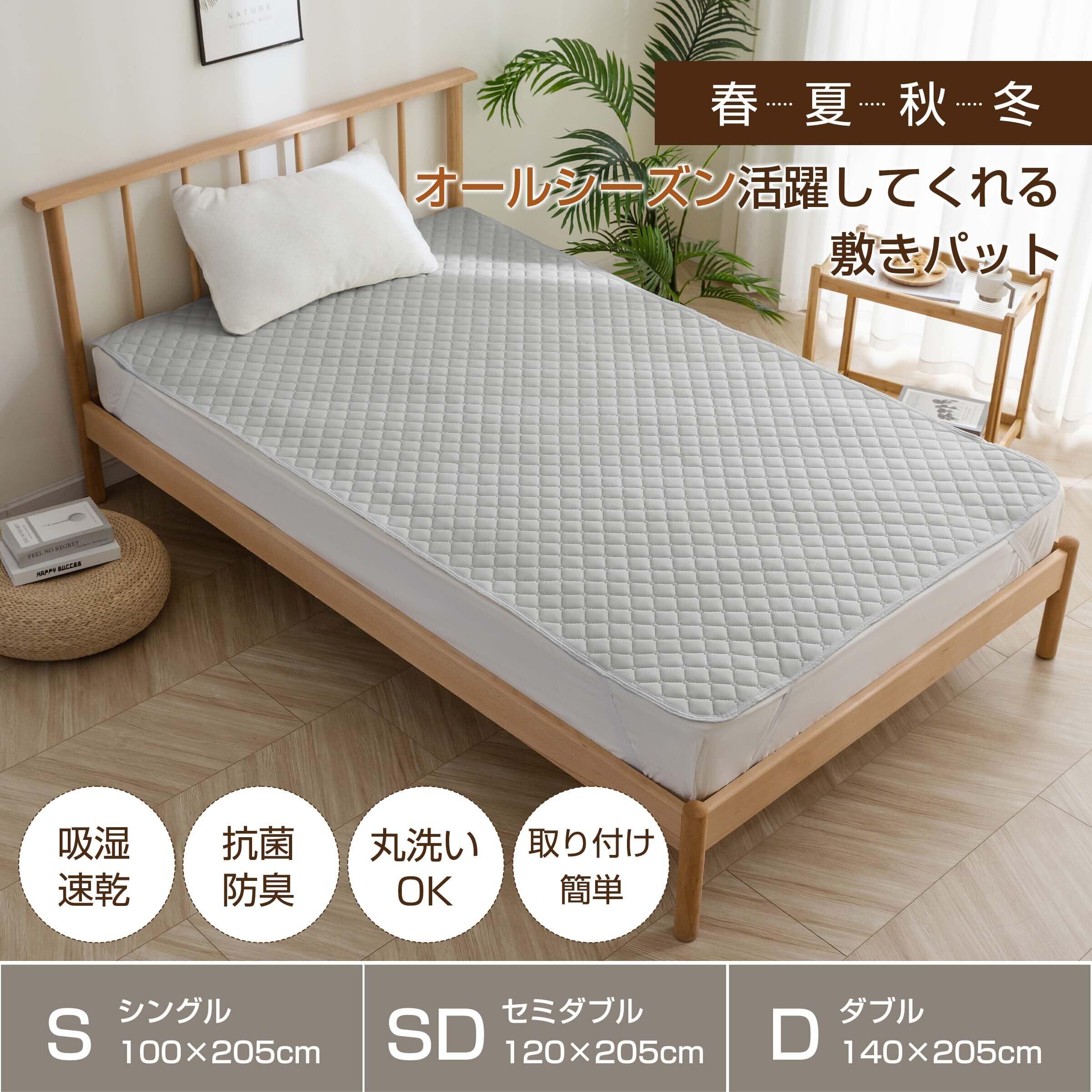 敷きパッド シングル ベッドパッド あったか 春 夏 秋 冬 オールシーズン使える 洗える しきぱっと 肌触りよい マットレスパッド 吸湿速乾 抗菌 防臭 防ダニ加工 SEK認証 静電気防止加工 四隅ゴム付き 100×205cm グレー