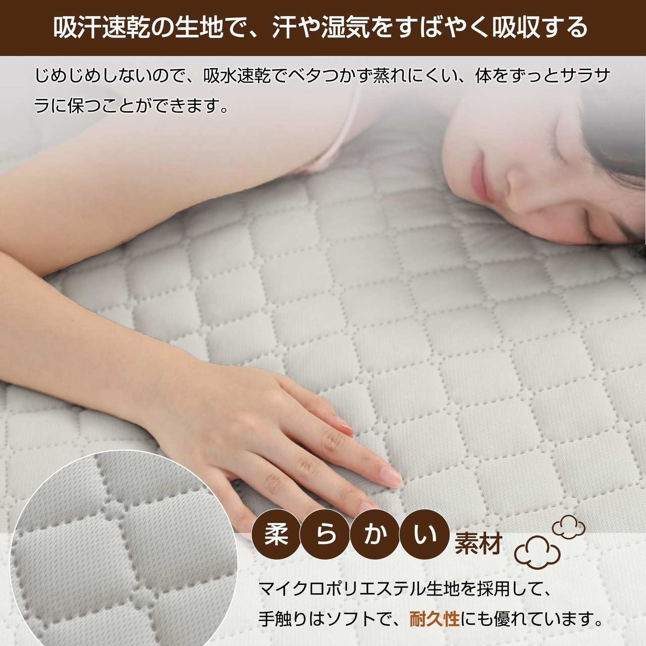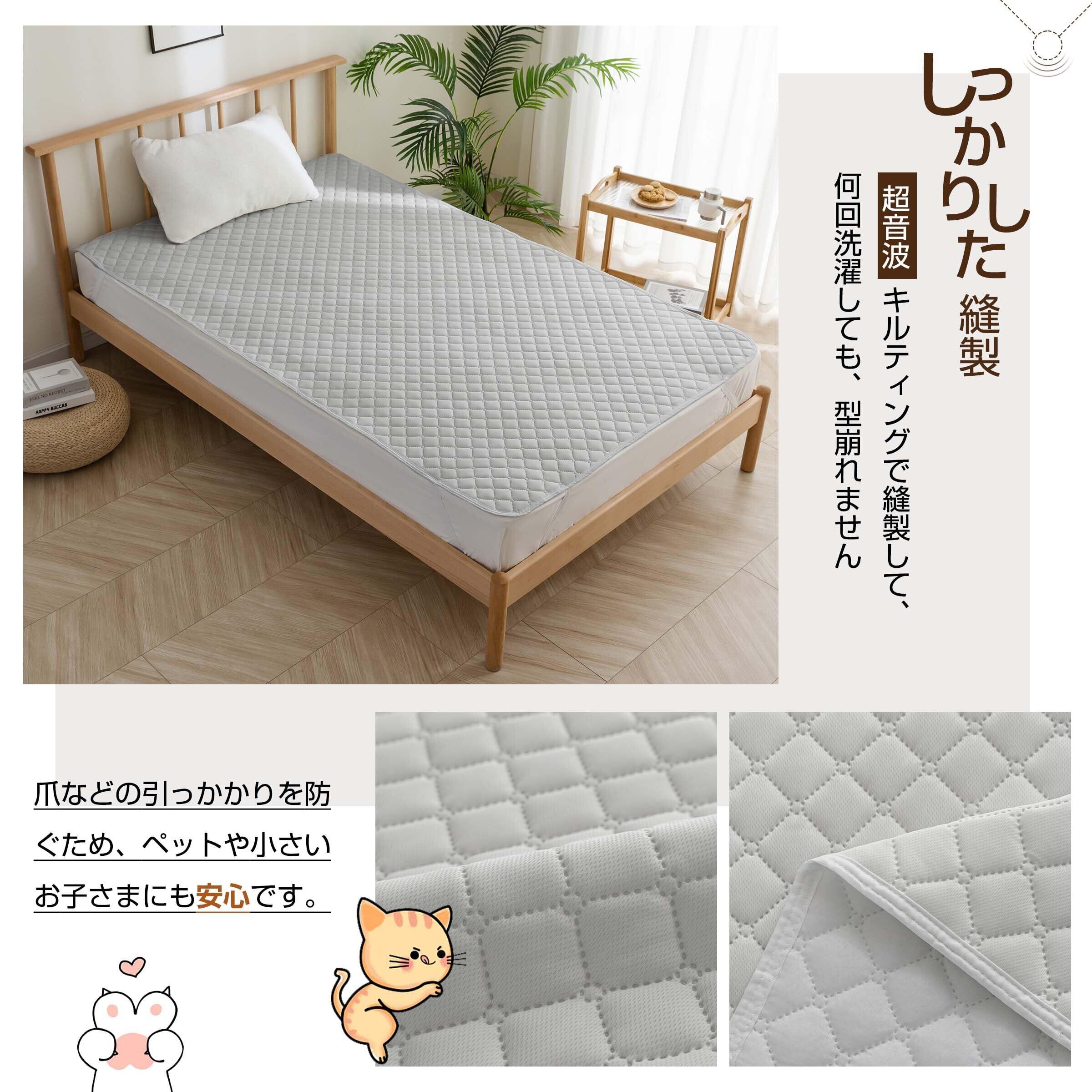 【柔らかい素材】ベッドパッドはマイクロポリエステルを採用し、柔らかいです。爪などの引っかかりを防ぐため、超音波キルティングでしっかりした縫製して、ペットや小さいお子さまにも安心です。耐久性に優れ、長くお使いいただける商品です。